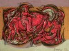 [FK1845/Z24/18] A kép mérete: 50 x 66 cm keret nélkül. Készült: pasztell, tempera, Papír A kép Kéri László (Budapest, 1949) alkotása. Jelezve Jobbra lent "Kéri László 76" A festmény jó állapotban van. Keret: Új A festmény hátoldalán a Képcsarnokvállalat raglapja látható. Magyar festők és grafikusok életrajzi lexikona I-II. Festő, grafikus. Tanulmányait a budapesti Képzőművészeti Főiskola festőszakán végezte 1976-ban. Sarkantyu Simon festőművész útmutatásai mellett képezte magát, de mesterének tartja Svády Lajost is. Évekig Szentesen dolgozott, majd Hódmezővásárhelyen telepedett le. 1977-ben tartotta első tárlatát. Ezt számos csoportos és egyéni bemutató követte. 1998-ban a Szegedi Táblaképfestészeti Biennálén szerepelt sikerrel. A Vásárhelyi Őszi Tárlatokon, valamint a békéscsabai Alföldi Tárlatokon nagyszámú díjat nyert el. Nem alföldi születésű, de tárgyi, valamint képi elemekkel kapcsolódik az alföldi hagyományokhoz. Rajzai, tusrajzai elementáris grafikusi tehetségről árulkodnak. Emberi viszonyokat, meghökkentő - alkalmasint - megdöbbentő emberi helyzeteket ábrázolnak rajzai. Festészetét illletően, pályakezdő korában erőteljesen érződött képein választott mesterének hatása, valamint a kései manierizimus és a korai barokk gomolygó, dinamikus rajzossága, erőteljes színvilága. A '80-as évek elején színei egyszerűbbek, tisztábbak lesznek. A '80-as, '90-es évtizedfordulón újból zaklatottan fest, diszharmonikus szín és tónuskontrasztokat használ. Az évtized vége felé újra higgadtabb megoldásokkat próbálkozik. Akvarellben és pasztellben is elismert művész, díszletterveket is készít. Számos köztéri munkája ismert (többnyire pannók). Alkotásai a Magyar Nemzeti Galéria és a hódmezővásárhelyi Tornyai J. Múzeum őrzi. (Pogány Gábor, MÉ, N.I.: Új Műv, 1992/5, Sz.P.: Új Műv. 1998/10) Magyar festők és grafikusok életrajzi lexikona I-II. Műgyűjtők és kereskedők kézikönyve Festő. Tanulmányait a bp.-i Képzőművészeti Főiskolán végezte, majd egy ideig Szentesen, később Hódmezővásárhelyen működött, ahol 1977-ben tartotta első tárlatát. Festészetének meghatározója az Alföld, de tárgyi és képi elemekkel kapcsolódik az alföldi hagyományokhoz. (MÉ) Magyar festők és grafikusok adattára Tanulmányait 1976-ban a Képzőművészeti Főiskolán végezte, a még ebben az évben Szentesre költözött. Jelenleg Hódmezővásárhelyen él, ahol 1977-ben tartotta első kiállítását. Festészetének meghatározója választott szűkebb hazája, az Alföld. Bár nem közvetlenül,inkább áttételesen, tárgyi és képi elemekkel kapcsolódik az alföldi hagyományokhoz. - Irod.: P. Sz. T.: Művész életrajzok. Bp. 1985. Művész életrajzok kortárs magyar képzőművészek 1976-ban végzett a Képzőművészeti Főiskolán, s még ez évben Szentesre költözött. Jelenleg Hódmezővásárhelyen él; első kiállítása e városban volt 1977-ben. - Festészetének meghatározója választott szűkebb pátriája, az Alföld; bár nem közvetlenül, inkább áttételesen, tárgyi és képi elemekkel kapcsolódik az alföldi festészeti hagyományokhoz. Kortárs magyar művészeti lexikon I-III. 1976: MKF, festő szak, mestere: Sarkanyú Simon, de Sváby Lajost is mesterének tartja. 1976-84-ig Szentesen él, azóta Hmvhelyen. A Vásárhelyi Őszi Tárlatokon és a bcsabai Alföldi Tárlatokon nagyszámú díjat nyert; 1980: PIM, József A.-pályázat HNF díja; 1978, 1984, 1986: Szegedi Nyári Tárlat díja; 1987: Tornyai Plakett; 1992: Akvarell B: Eger város Önkormányzat díja; 1998: Zene szemeimnek, MATÁV festészeti pályázat II. díja. Pályakezdő korában erőteljesen érződött képein választott mesterének hatása, valamint a kései manierizmus, és a korai barokk gomolygó, dinamikus rajzossága, erőteljes színvilága. A 80-as évek elején a színek egyszerűbbek, tisztábbak lesznek és előszeretettel alkalmaz a képen belső fényforrást. A 80-as, 90-es évtizedfordulón újból zaklatottaan fest, diszharmonikus szín és tónuskontrasztokat használ, szimbolikája áttételesebbé válik, majd kisméretű vásznakból sorozatokat készít, egy keretben álllítva ki azokat. Az évtized vége felé újra higgadtabb megoldásokat választ. Kéri László festészete mindvégig emberközpontú, figurális, az erőteljes emberi érzelmek közvetítője. Akvarellben és pasztellben is elismert művész, díszletterveket is készít. Ek: 1977: Medgyessy T., Hmvhely; 1979: Kisg. Szentes; 1981: Horváth E. G., Bgyarmat; 1983: Móra F. M. Képtára, Szeged; 1985: Vaszary T., Kaposvár; Gyöngyösi G., Gyöngyös; 1988: M. Historii, Lódz (PL); Magyar Int. Varsó; 1989: Art Service G., Párizs (kat.); 1990: Chateau d' Eguilly, Pouilly en Auxois (FR); 1991: Coll. Hung., Bécs; Műv. Közp., Nagykanizsa; 1993: Art Service G., Párizs; 1995: Wesselényi 70 G.; Tornyai J. M., Hmvhely; Bartók G., Szeged; 1996: G. de Meerse, Haarelmmermeer (NL); Hódtói Ált. Isk., Hmvhely; 1997: Tiszai G., Csongrád Vcsk: 1977-től Vásárhelyi Őszi Tárlatok, Szegedi Nyári Tárlatok, Alföldi Tárlatok, Bcsaba; 1981: Az út elején? Közben? Nyolc fiatal művész, Bartók 32 G.; 1982: I. Orsz. Rajzb., Salgótarján, Festőművészek a XI. kerületben, Bartók 32 G.; 1984: Vásárhelyi művészek, Zentai M. (Senta, YU), Vallomások az emberről, Juhász Gy. Műv. Közp., Szeged; 1987: Nközi Művésztelep, Iserlohn (NSZK); 1988: Görög Templom, Vác; Wilhelmshafen (D); 1994: Európa elrablása, Vigadó G.; 1997: Szimbiózis, Pest Center G.; 1998: Mednyánszky Társaság, S. Andrea G., Párma (OL); Belső rajz, Nádor G.; Kollázs, Vigadó G.; Zene szemeinknek, MATÁV pályázat, Pécs, Győr, Miskolc, Debrecen, Bp.; 1999: Ne vakolj a freskóra, Móra F. M. Képtára, Szeged; Mednyánszky Társaság, Koller G.; S