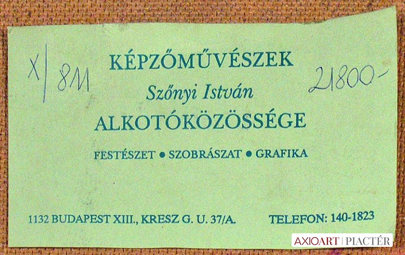 A festmény hátoldalán a Szőnyi I. Alkotóközösség raglapja található.