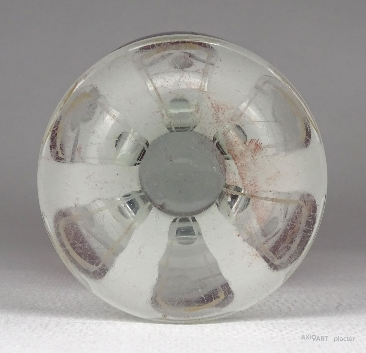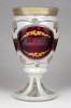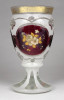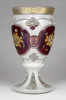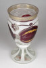 XIX. századi bíborpácolt és fehér Biedermeier talpas fújt üveg kúrapohár 14.7 cm