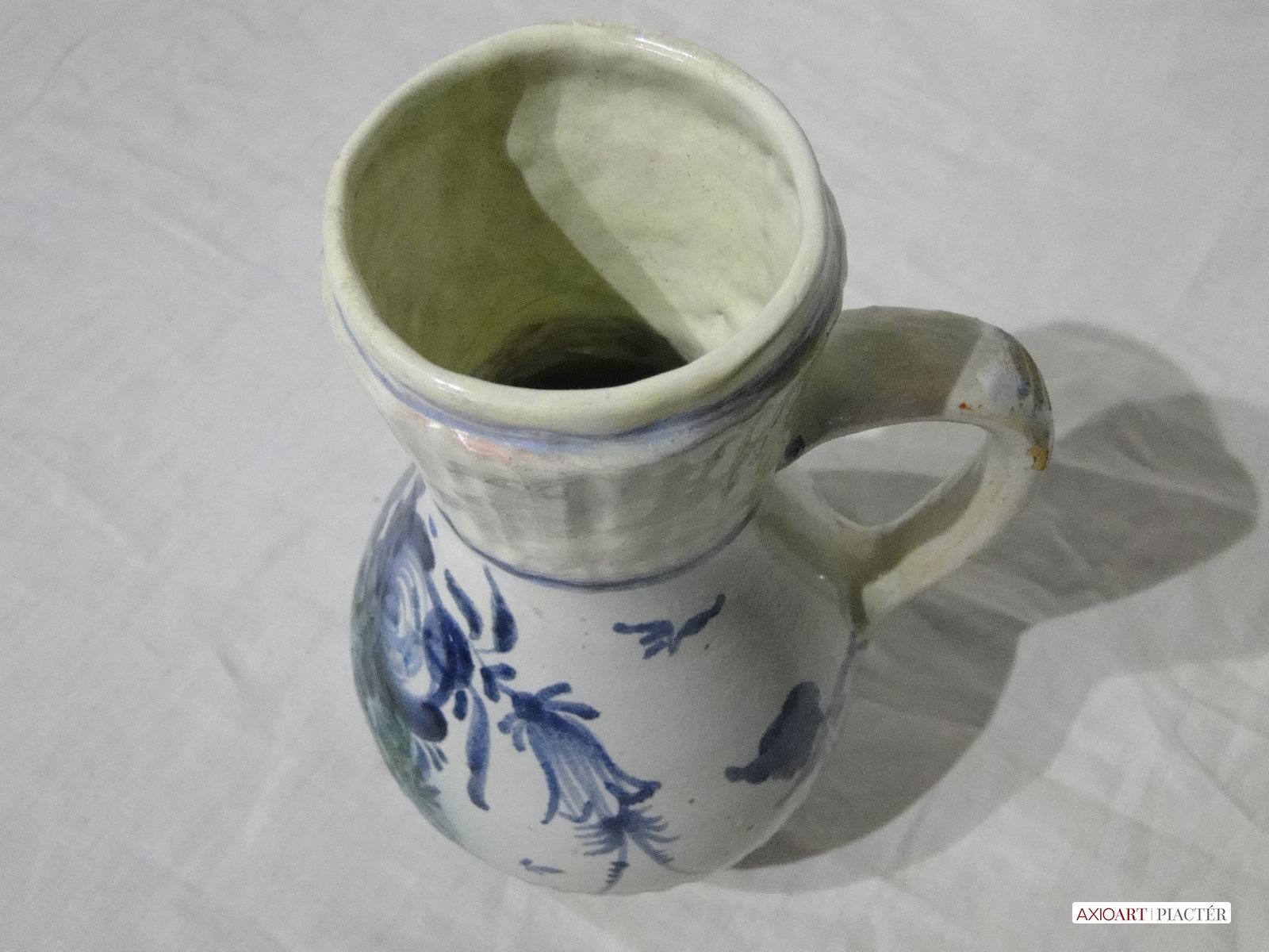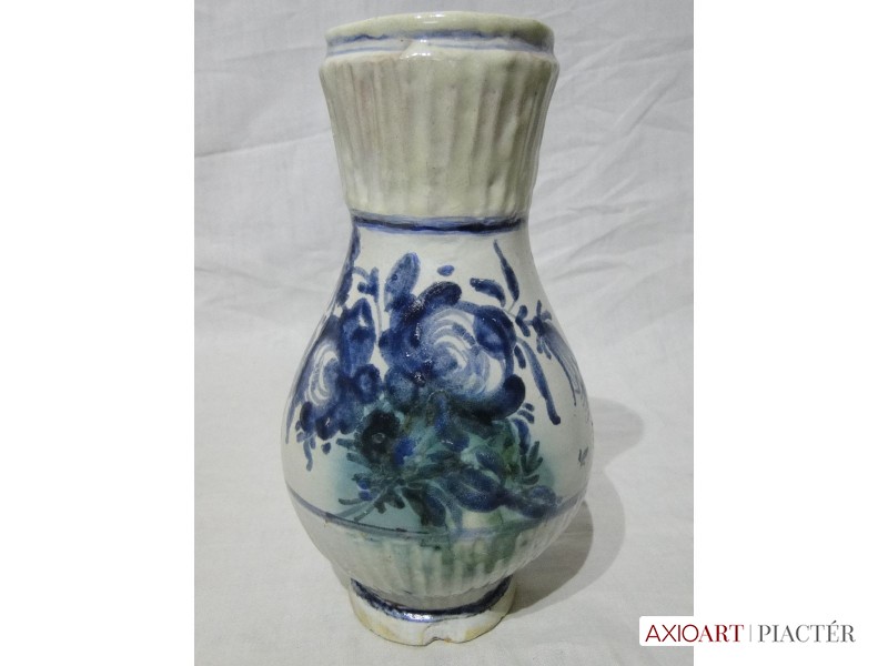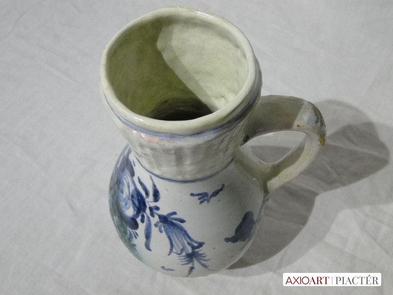 [1O960/UZ-N] Gyönyörű kobaltkék, sárga, zöld és fehér mázas, virágdíszes bokály, 1880 körüli. Magasság: 22.5 cm Súly: 0.46 kg Súlya 458 g, magassága 23 cm.