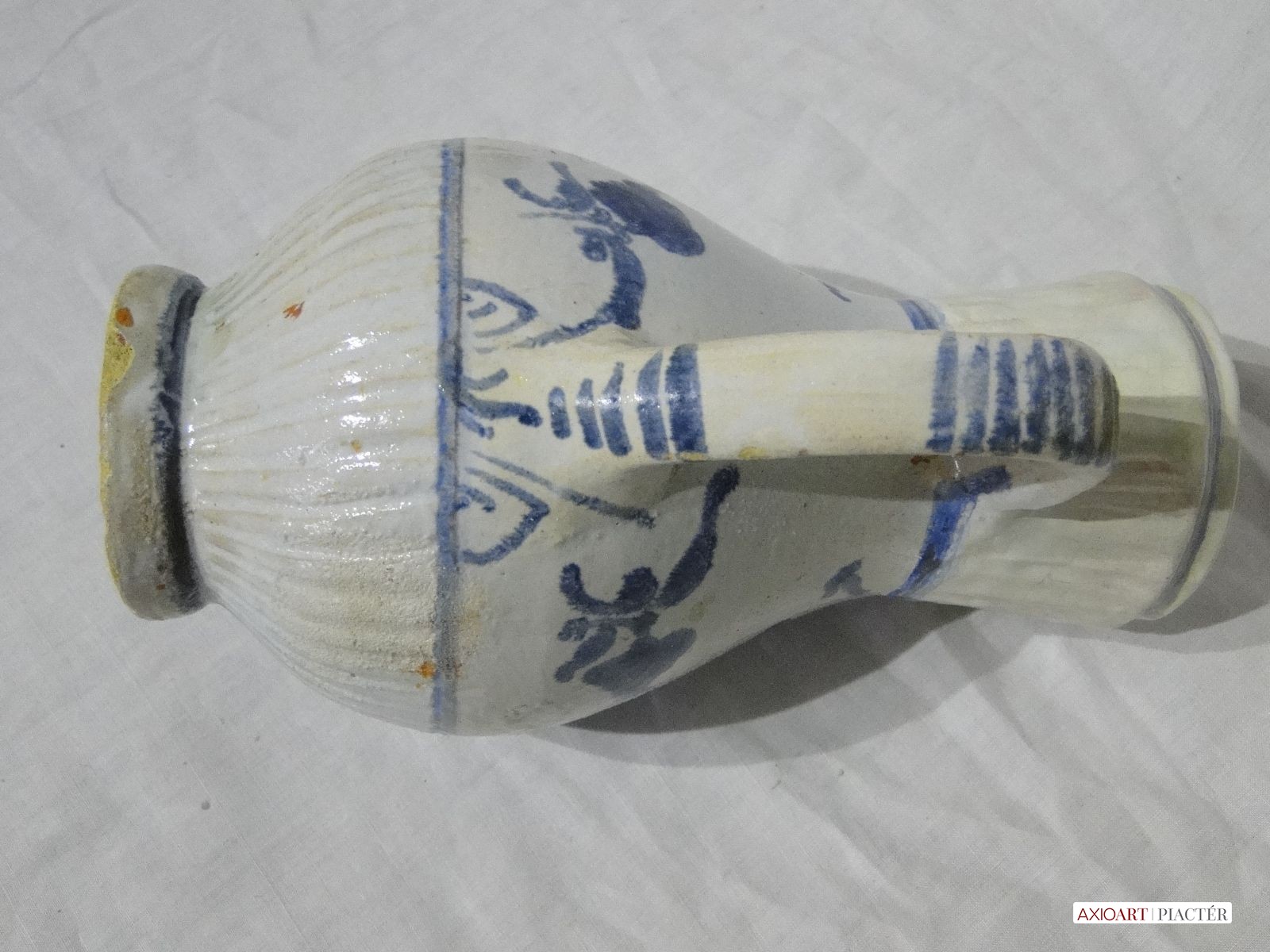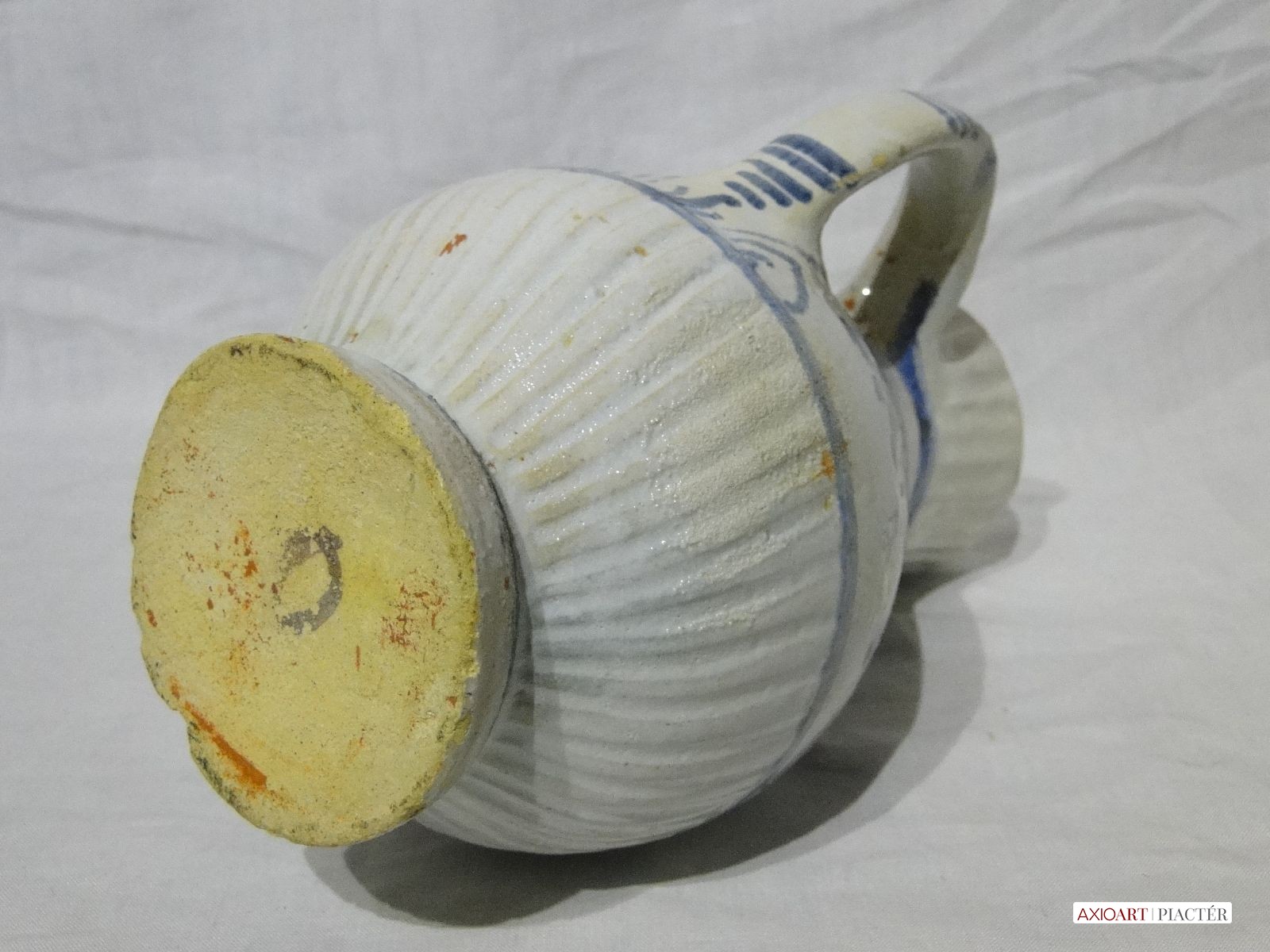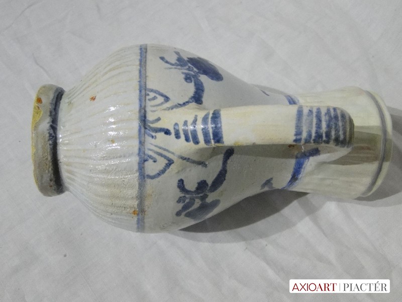 [1O961/UZ-N] Gyönyörű kobaltkék, sárga és fehér mázas, virágdíszes bokály, 1880 körüli. Magasság: 21.5 cm Szélesség: 10.5 cm Súly: 0.45 kg Súlya 458 g, magassága 23 cm.