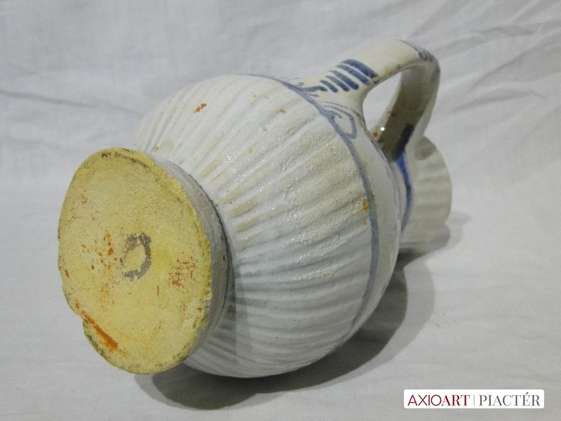 [1V537/X318/2] Antik, szép állapotban megmaradt, a XIX. század végén, az 1880-as években készült erdélyi néprajzi fazekas munka, székelyudvarhelyi bokály. Magasság: 22.8 cm Szélesség: 10 cm Hosszúság: 12.5 cm Súly: 0.47 kg