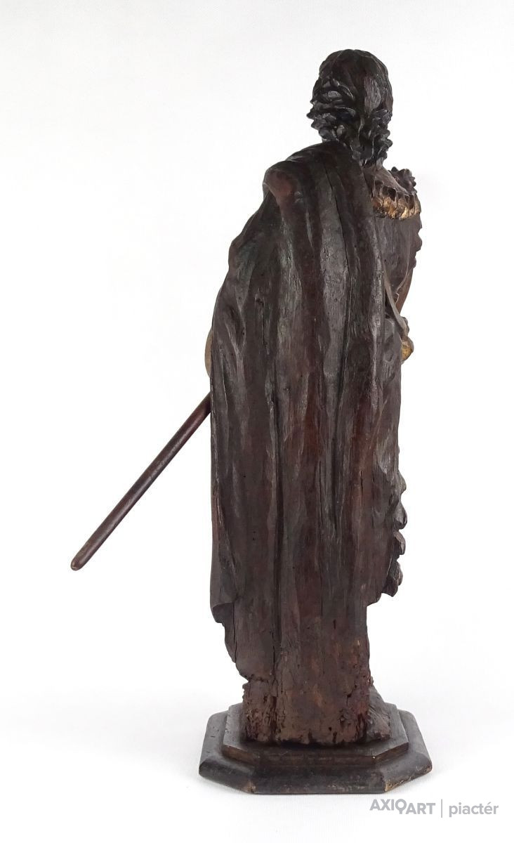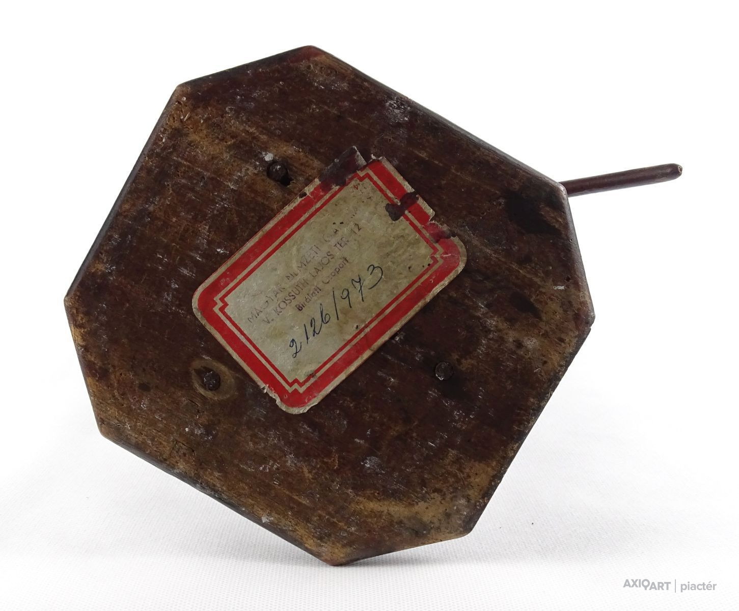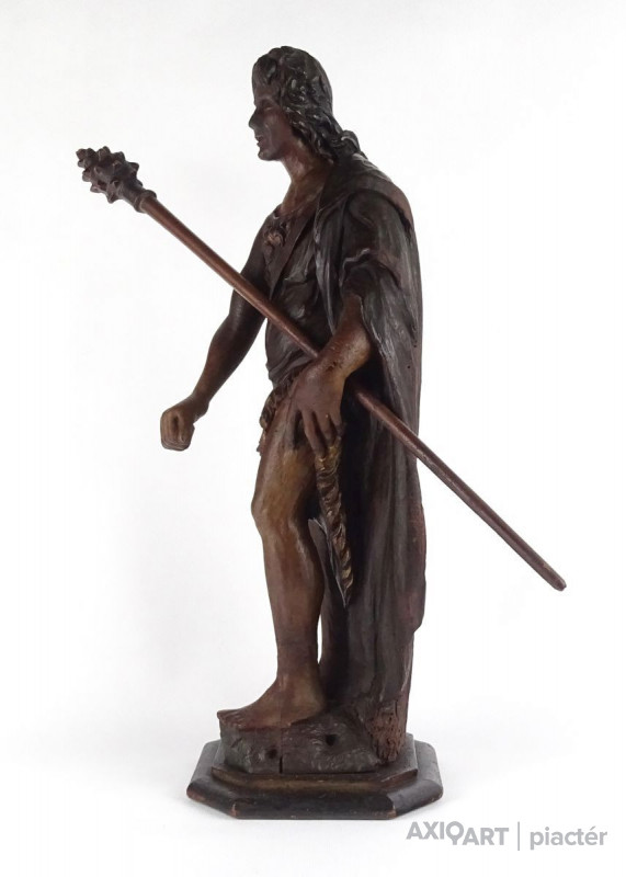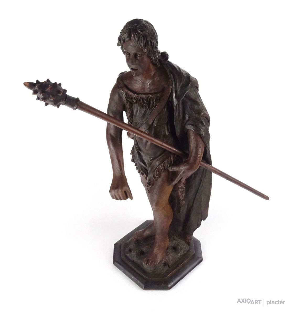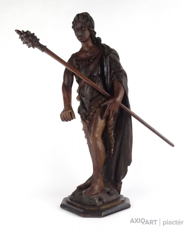 [1R847/Z027] Antik talapzaton álló férfi alak, férfi figura az 1800-as évekből. A szobor talpán egy régi bírálati vignetta található: MAGYAR NEMZETI GALÉRIA V. KOSSUTH L. TÉR 12 BÍRÁLATI CSOPORT 2126/973 Magasság: 49 cm Súly: 1.83 kg