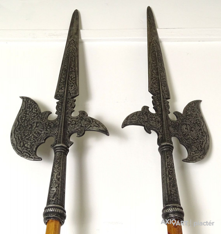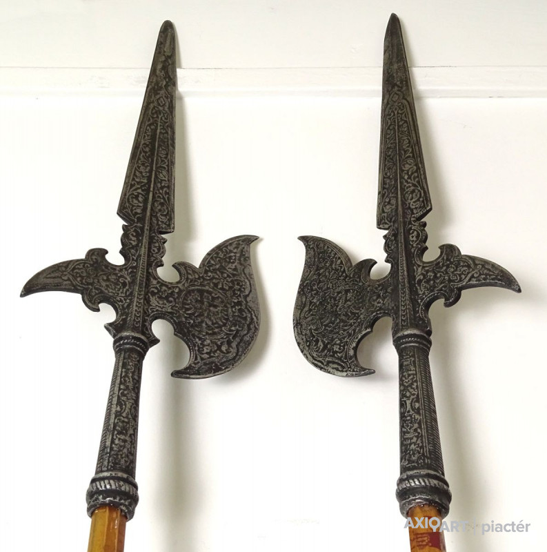XX. századi alabárd másolat, replika pár. A fej rész puhafém öntvény, gazdag díszítéssel.