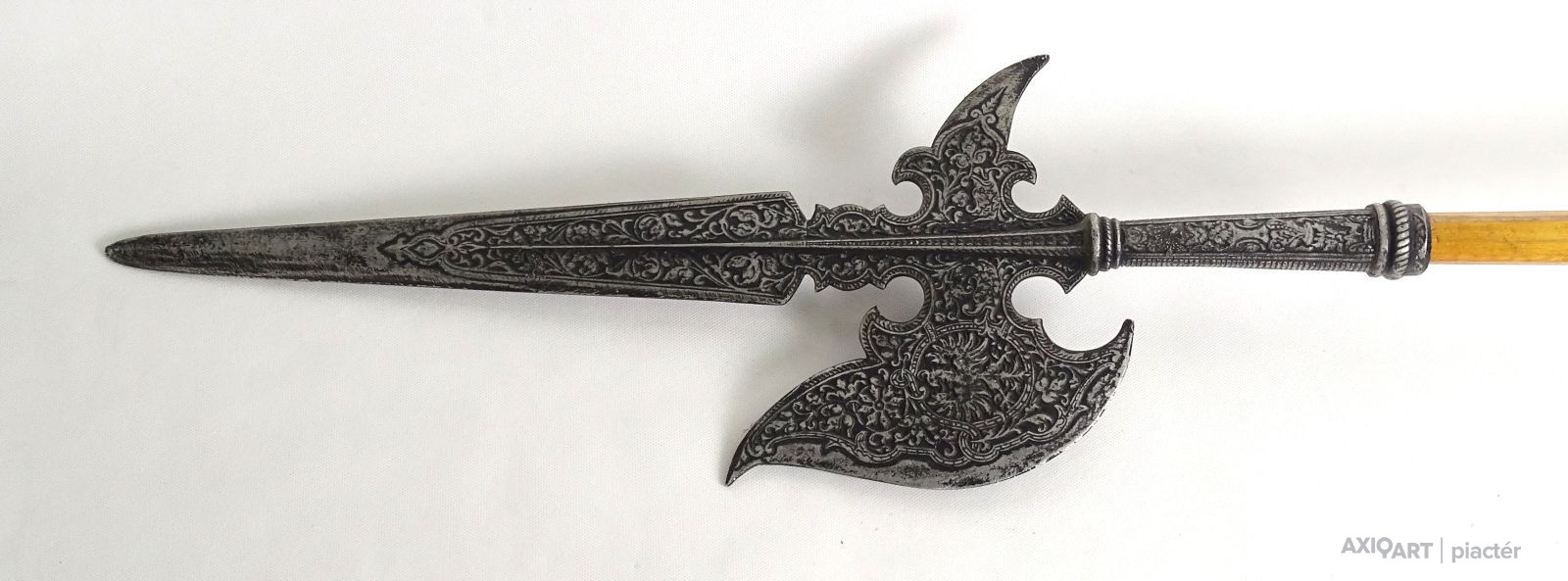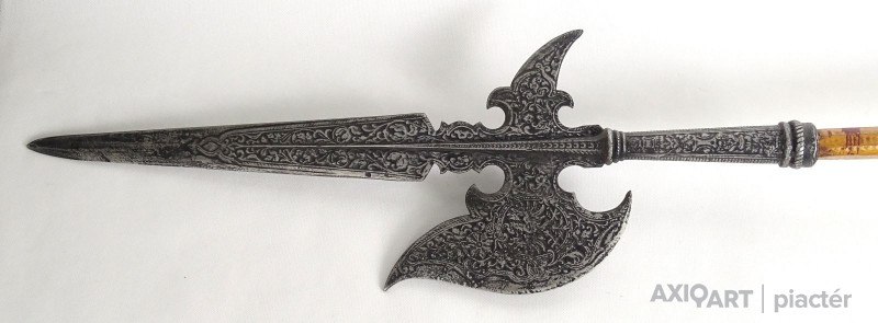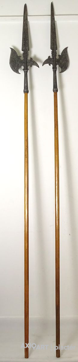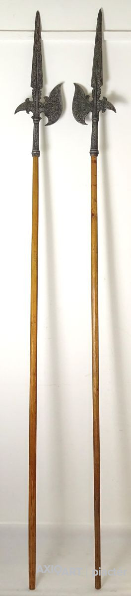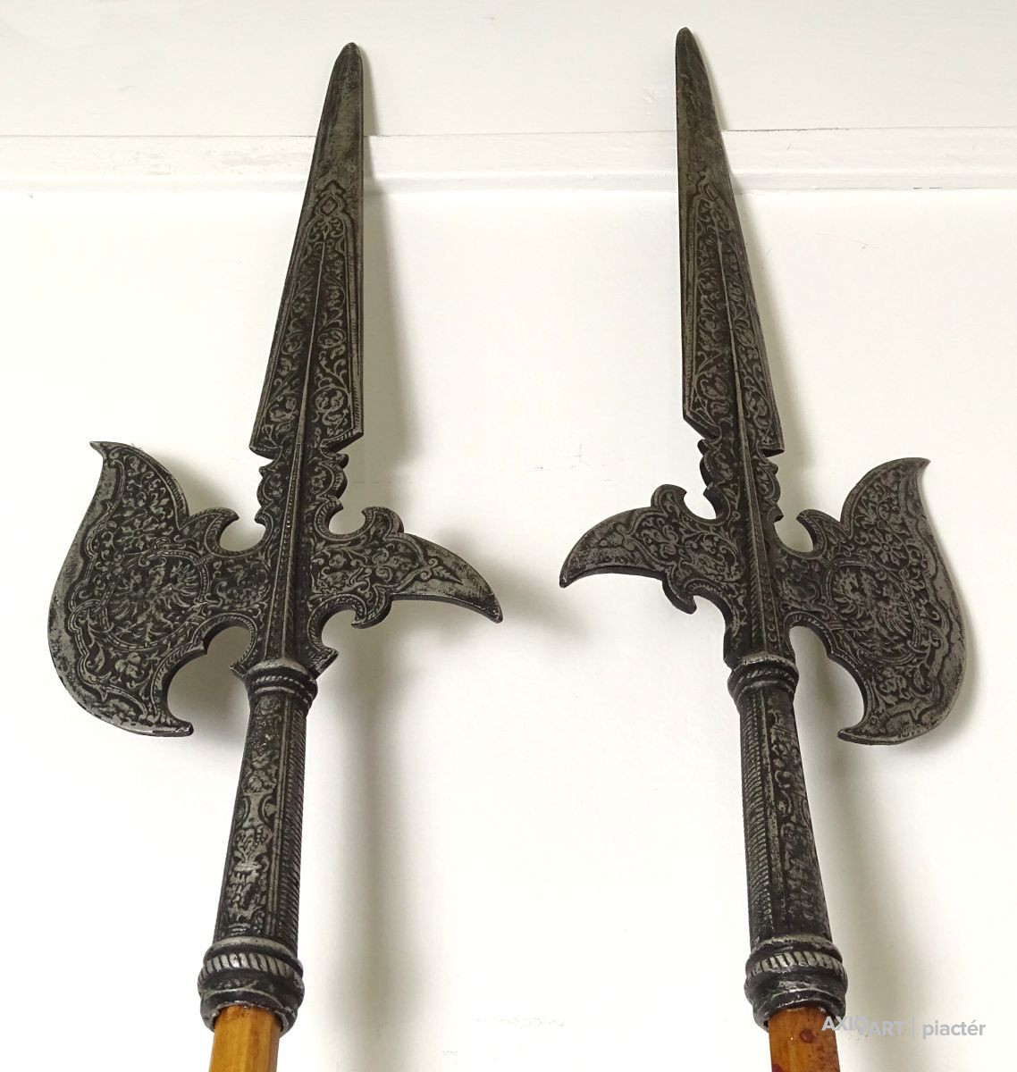 [1R077/KCS] XX. századi alabárd másolat, replika pár. A fej rész puhafém öntvény, gazdag díszítéssel. Hosszúság: 255 cm Súly: 3.005 kg