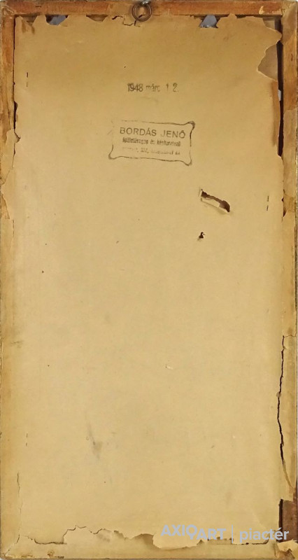 [1Y034/Z018] Olaj vászon festmény, üveglap mögött, szép állapotú képcsarnokos keretben. Akasztási lehetőséggel rendelkezik. Jelezve jobbra lent: Balog A. Hátoldalán a kereten Képcsarnok Vállalat címke töredék látható, rajta felirat: A művészeti alkotás címe: LEÁNY Magasság: 86 cm Szélesség: 66 cm Súly: 5.37 kg Balogh András (képei szignóján az 1960-as évektől Balog) (Budapest, 1919. március 14. — Budapest, 1992. március 18.) festőművész, kerttervező, művészeti szakíró, c. egyetemi tanár. Életpályája és munkássága Apai ágon a géresi Baloghok Szatmár megyéből a dél-erdélyi Alsó-Fehér megyébe származtak, anyai fölmenői a Székelyföldön: Csíkban, ill. Háromszéken éltek. Szülei az 1900-as évek elején költöztek Budapestre. A Képzőművészeti Főiskolán 1937-ben kezdte meg tanulmányait Burghardt Rezső tanítványaként. 1950-töl 1980-ig a Kertészeti Főiskolán (később Kertészeti Egyetem) tanított a kerttervezési tanszéken művészettörténetet, szabadkézi rajzot, ábrázoló geometriát és kertesztétikát. Az Iparművészeti Főiskolán óraadóként kertesztétikát adott elő. 1971-ben részt vett a firenzei Palazzo Strozziban rendezett biennálén, ahol aranyéremmel tüntették ki. Rendszeres önálló és csoportos kiállítások sora következett ezután nemcsak Magyarországon, hanem Olaszország és Németország számtalan városában, kiállított Finnországban, Kanadában is. Egyéni kiállításai gyakran katalógusokkal jelentek meg.[1][2][3] Nyaranként Tihanyban vagy Zsennyén alkotott. Festészetét poétikus realizmus jellemzi, dekoratív elrendezésű kompozíciói és lágy színvilága bensőséges hangulatot, szépséget, harmóniát árasztanak. (Lány egyszarvúval; Alvó, Emberpár és táj, stb.) Nagyon sok tájképet és portrét festett, történelmi személyiségekről is, 1978 és 1989 közt megfestette Mindszenty József bíboros portréját. Képei a Magyar Nemzeti Galériában, vidéki múzeumainkban, olasz, német, finn, észak-amerikai, kanadai, ausztráliai gyűjteményekben vannak.