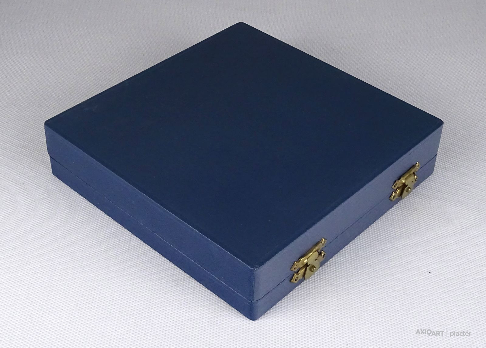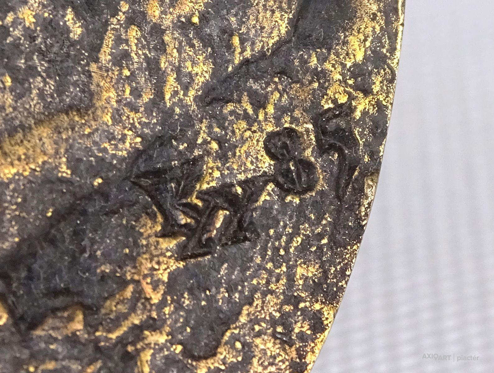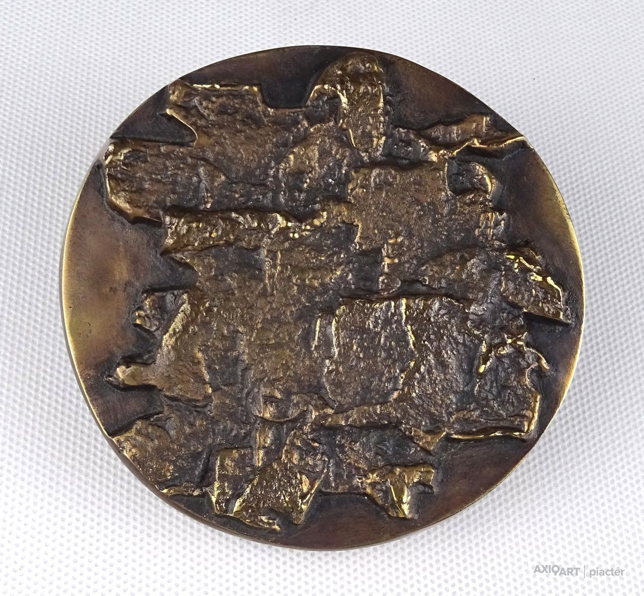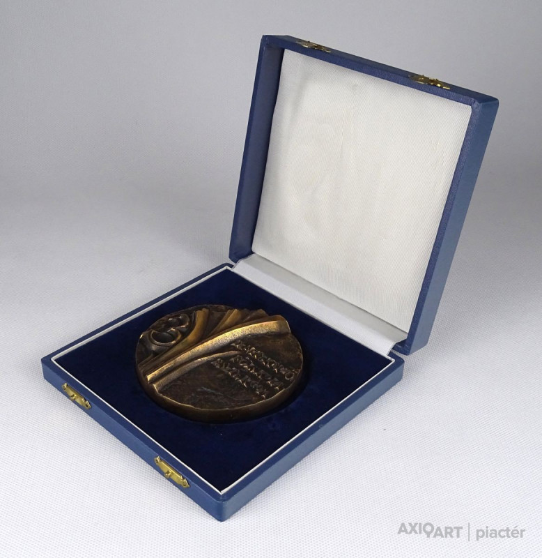 Hibátlan állapotú, vastag, kétoldalas jelzett bronz plakett dobozában.