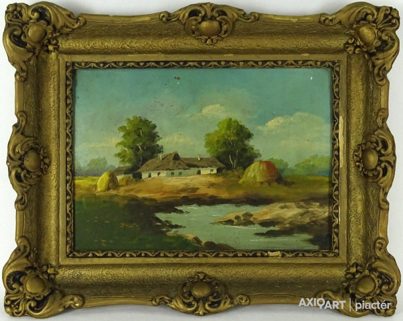Olaj karton festmény, régi aranyozott Blondel keretben. Akasztási lehetőséggel rendelkezik.