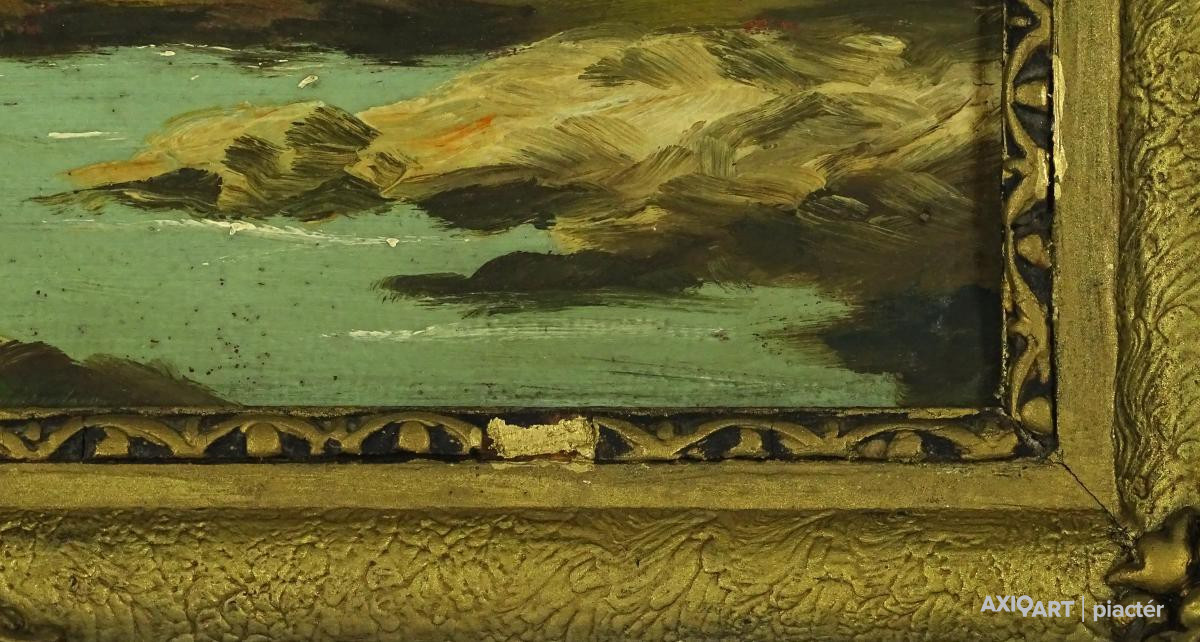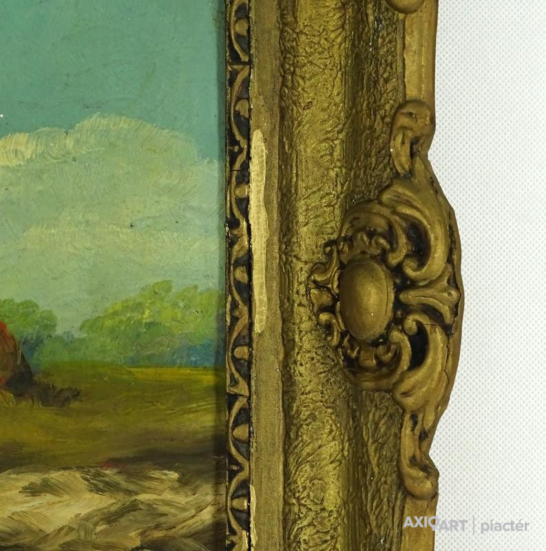[1H374/095] Olaj karton festmény, régi aranyozott Blondel keretben. Akasztási lehetőséggel rendelkezik. Magasság: 39 cm Szélesség: 49.5 cm Súly: 1.215 kg