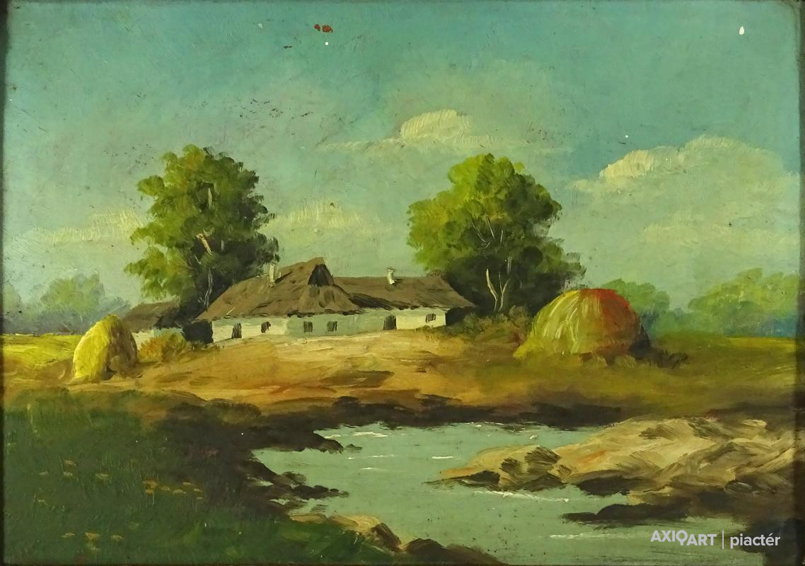 [FKC190/Bp108/16] A kép mérete: 25 x 31 cm keret nélkül. Készült: Olaj, Karton A kép Katona Kiss Ferenc (Szegvár, 1909) alkotása. Jelezve középen lent "959 Katona" A festmény jó állapotban van. Keret: Ép Magyar festők és grafikusok életrajzi lexikona I-II. Festő és grafikus. A budapesti Képzőművészeti Főiskolán Rudnay Gyula volt a mestere. Művészetére mégis Koszta József festőművész volt igen nagy hatással. 1940-1945 között ipartanuló iskolai rajztanár, 1951-1953 között a műszaki Tanárképző Főiskola adjunktusa, 1953-56 között a BME Ábrázológeometriai Tanszékének tanársegédje. 1956-ban visszavonult Szentesre, és csak a festészetnek élt. A város megbecsült művészeként a Szentes környéki táj és az alföldi ember ihletett ábrázolója. Képeit fejlett rajzkészség, színgazdagság jellemzi. Első önálló kiállítása 1958-ban Szentesen volt. A Délalföldi Tárlat rendszeres résztvevője. Sárospatakon grafikai munkáit mutatta be. Díjak: Szentes városáért kitüntetés, Szentes városa Pro Urbe-emlékérem, Koszta-emlékérem. Munkáit a szentesi Képzőművészeti Alapítvány őrzi. (Tasnádi András adatközlése nyomán, MFGA) Magyar festők és grafikusok adattára A Képzőművészeti Főiskolán 1939-ben szerezte meg a rajztanári és művészeti diplomáját, ahol Rudnay Gyula volt a mestere. 1940-1955 közötti években a budapesti Műszaki Egyetem ábrázoló tanszékének volt tanársegédje. 1966 óta csak festészettel foglalkozik, művészetére Koszta József volt igen nagy hatással. Első önálló tárlatát 1958-ban Szentesen rendezte meg. Azóta 1984 szeptemberéig 11 önálló tárlata volt. Sárospatakon grafikai munkáit mutatta be. A Délalföldi Tárlat rendszeres résztvevője. Munkája elismeréseként 1981-ben Szentes város Pro Urbe emlékérmet, 1984-ben pedig a Koszta-emlékérmet kapta. - ÖLK Magyar festők és grafikusok életrajzi lexikona I-II. Műgyűjtők és kereskedők kézikönyve Festő és grafikus. A bp.-i Képzőművészeti Főiskolán Rudnay Gyula volt a mestere. Művészetére mégis Koszta József festőművész volt igen nagy hatással. Első önálló kiállítása 1958-ban Szentesen volt. A Délalföldi Tárlat rendszeres résztvevője. Sárospatakon grafikai munkáit mutatta be. Szentes városa Pro Urbe-emlékérmet adományozott kiemelkedő munkásságáért, 1984-ben Koszta-emlékérmet kapott. (MFGA)