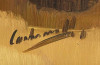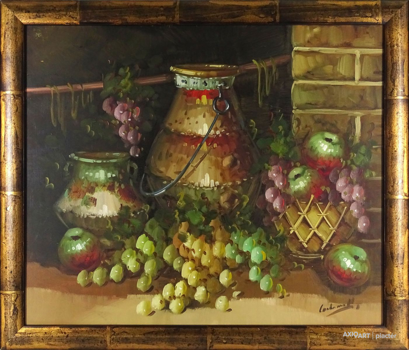 [FK2668/Bp301/4] A kép mérete: 50,5 x 80,5 cm keret nélkül. Készült: Olaj, Vászon A kép Moldován István (Kolozsvár, 1911) alkotása. Jelezve Jobbra lent "Moldován István" A festmény jó állapotban van. Keret: Ép A festmény hátoldalán a Képcsarnokvállalat raglapja láltható. Magyar festők és grafikusok életrajzi lexikona I-II. Festő. Tanulmányait Kolozsvárott, a Szépművészeti Főiskolán kezdte 1930-ban. A következő esztendőben a nagybányai Szépművészeti Iskolában Thorma János és Krizsán János korrektúráján képezte magát. 1931-ben a budapesti Képzőművészeti Főiskola hallgatója lett. Réti István, később Szőnyi István volt a mestere. Már mint főiskolás sok díjat és kitüntetést nyert. 1948-ban megkapta a római ösztöndíjat, de lemondva róla, Erdélybe ment. 1948-1950 között Erdélyben élt, és népművészetben gazdag vidékein festett. 1943-ban Kolozsvárott, 1946-ban Gyöngyösön, 1955-ben, 1959-ben és 1962-ben a Kulturális Kapcsolatok Intézetében, illetve a Csók Galériában rendezett egyéni bemutatókat. Ezen kívül több Európai országban, az USA-ban, Kanadában és Indiában is bemutatta munkáit. Eleinte sajátos atmoszférájú, lírai tájképeket, eleven színvilágú képmásokat festett, később mondernebb, erőteljesebben szerkesztett művekkel jelentkezett. A Pécsi Tanárképző Főiskola számára mozaikot készített. Erdély szerelmese volt. A székely népművészet gazdag formavilágának hatása döntő jelentőségűvé vált sokoldalú művészetében. Műv. díjak: a Szinyei Társaság elismerő oklevele, a Főváros festészeti-díja, "Kolozsvár a képzőművészetben" II. díj, állami ösztöndíj, római ösztöndíj, a Képzőművészek Szövetsége Észak-Magyarországi festészeti díja, SZOT festészeti díj. Több murális művet (mozaik) alkotott. A Magyar Nemzeti Galéria több alkotását őrzi. (M. L.: Műv. 1967/6, RI-NM) Magyar festők és grafikusok életrajzi lexikona I-II. Műgyűjtők és kereskedők kézikönyve Festő. Tanulmányait a kolozsvári Szépművészeti Főiskolán kezdte 1930-ban. A nagybányai szabadiskolában is megfordult. Itt Thorma János és Krizsán János korrektúráján képezte magát. 1931-ben Budapesten a Képzőművészeti Főiskola hallgatója lett. Réti István, később Szőnyi István volt a mestere. Már mint főiskolás sok díjat nyert. 1948-ban megkapta a római ösztöndíjat, de lemondva róla, Erdélybe ment. 1948-1950 k. Erdélyben élt, és népművészetben gazdag vidékein festett. 1943-ban Kolozsváron, 1946-ban Gyöngyösön, 1955-ben, 1959-ben és 1962-ben a Kulturális Kapcsolatok Intézetében, illetve a Csók Galériában rendezett önálló kiállítást. Ezen kívül több Európai országban, az USA-ban, Kanadában és Indiában is bemutatta műveit. Eleinte sajátos atmoszférájú, lírai tájképeket, eleven színvilágú képmásokat festett, később mondernebb, erőteljesebben szerkesztett művekkel jelentkezett. A Pécsi Tanárképző Főiskola számára mozaikot készített. Erdély szerelmese volt. A székely népművészet gazdag formavilágának hatása döntő jelentőségűvé vált sokoldalú művészetében. 1942-ben megkapta a Szinyei Társaság elismerését, és a Főváros festészeti-díjat,1943-ban elnyerte a "Kolozsvár a képzőművészetben" c. díjat. 1947-ben állami ösztöndíjat,1948-ban a római ösztöndíjat, 1972-ben a Képzőművészek Szövetsége Észak-Magyarországi festészeti díját kapta meg. A MNG több művét őrzi. (M. L.: Műv.-1976/6) Magyar festők és grafikusok adattára Tanulmányait Kolozsvárott a Képzőművészeti Főiskolán, majd Nagybányán Thorma János és Krizsán János irányítása mellett kezdte, 1931-től Budapesten megszakításokkal a Képzőművészeti Főiskolán Réti István és Szőnyi István növendékeként fejezte be. 1949-ben és 1950-ben ösztöndíjjal dolgozott Erdélyben, majd hosszú tanulmányutakra indult Nyugat-Európába, az Egyesült Államokba, s a Szovjetunióba. Először Kolozsvárott lépett a nyilvánosság elé 1943-ban, majd 1946-ban Egerben és Gyöngyösön, 1947-ben Miskolcon, 1948-ban Hatvanban, 1955, 1961 és 1981-ben a Csók Galériában, 1959-ben a KKI-ben, 1960-ban Nagykanizsán, 1963-ban Kiskunfélegyházán, 1966-ban Debrecenben, 1969 és 1975-ben Békéscsabán, 1971-ben a Mednyánszky Teremben, 1973-ban Gyöngyösön és Debrecenben, 1977-ben Egerben, 1979-ben Veszprémben, 1983-ban Miskolcon, 1984-ben Csepelen, 1986-ban a Vigadó Galériában rendezett önálló kiállítást. Külföldi kiállításai: Moszkva, Varsó, India, Szófia, Párizs, Bukarest, Belgrád, New York, Montreál és Toronto. Eddig közel kétezer színes táblaképet festett, de szívesen foglalkozik mozaikkészítéssel is. 1964-ben a Pécsi Pedagógiai Főiskola, 1968-ban a Salgótarjáni Kórház, 1969-ben a názáreti templom és 1970-ben a Videoton Vállalat díszterme részére mozaikot készített. - Erdély szerelmese. A székely népművészet gazdag formavilágának hatása döntő jelentőségűvé vált festészetében. Olyan formanyelvet alakított ki magának, amely színvilágában és summázó formaalakításában sajátos erdélyi zamat érződik, ugyanakkor korszerűen modern is konstruktivista stílusa. Munkásságát 1942-ben a Szinyei Társaság elismerésével és a Fővárosi festészeti-díjjal, 1943-ben Római-ösztöndíjjal, 1947-ben Állam ösztöndíjjal (Románai), 1963-ben a SZOT festészeti-díjával, 1972-ben a Képzőművészek Szövetsége Észak-Magyarországi festészeti-díjával tüntették ki. - Irod.: Bíró Béla: Kolozsváry Moldován István. Erdélyi Helikon, 1943.; Felvinczi Takács Zoltán: Kolozsváry Moldován István. Kolozsvár, 1943.; Dutka Mária: Magyar Nemzet, 1961.; Maksay László: Moldován István. Művészet, 1965.; D. Fehér Zsuzsa. Moldován István, Bp. 1971.; Theisler G