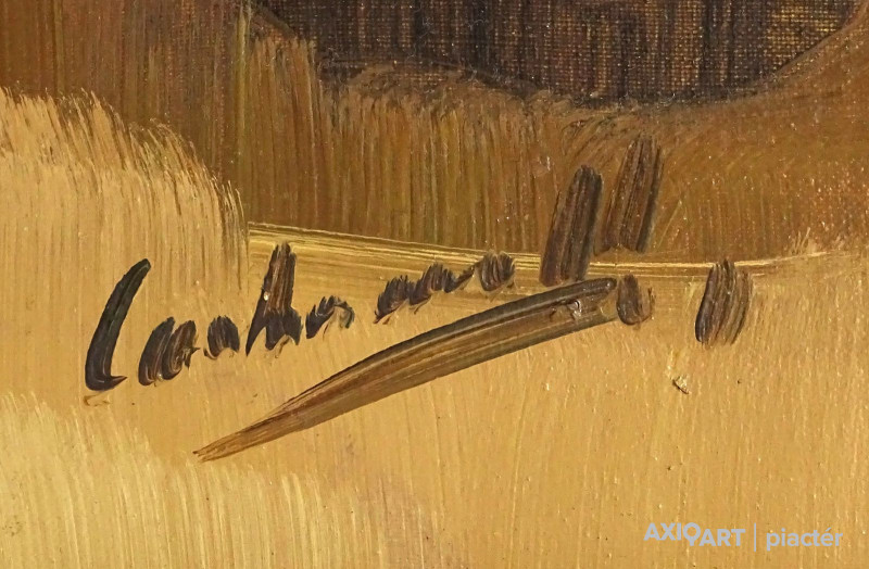[1M393/070] Olaj vászon festmény, szép állapotú aranyozott keretben. Akasztási lehetőséggel rendelkezik. Jelezve jobbra lent, lásd fotó. Magasság: 52.5 cm Szélesség: 61.5 cm Súly: 1.115 kg