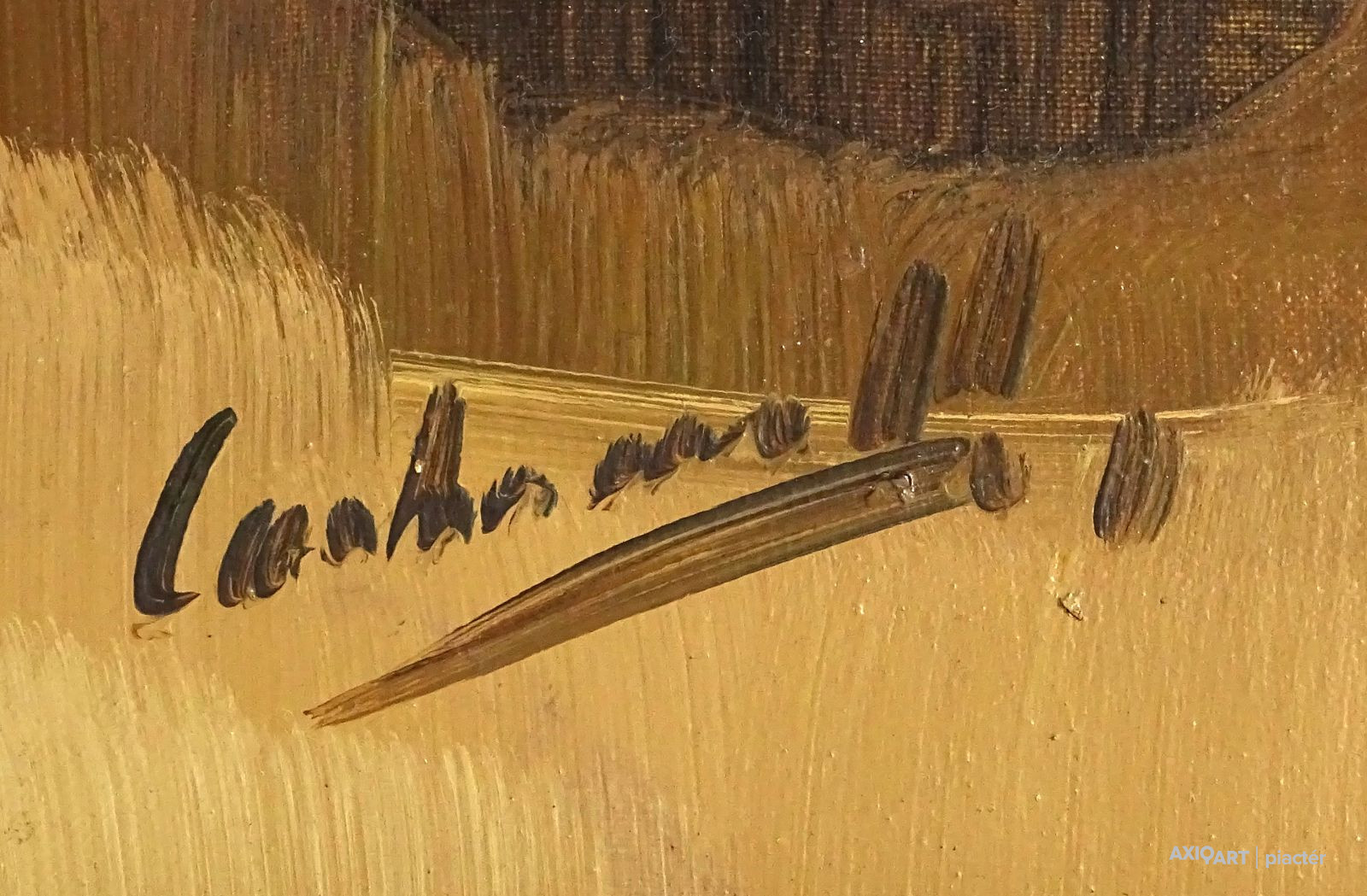 Olaj vászon festmény, szép állapotú aranyozott keretben. Akasztási lehetőséggel rendelkezik.