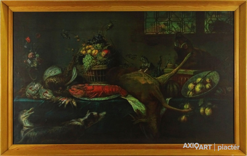 Régi nagy méretű olajnyomat vásznon, egyszerű keretben. Akasztási lehetőséggel rendelkezik.