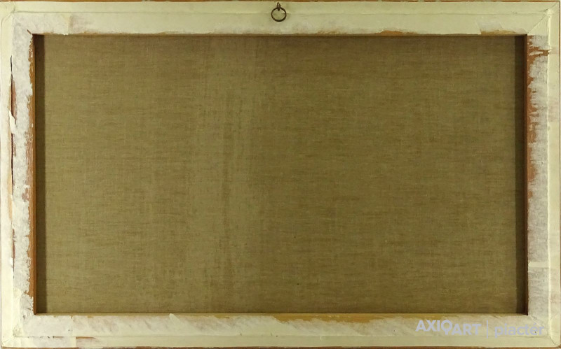 [1M488/082] Régi nagy méretű olajnyomat vásznon, egyszerű keretben. Akasztási lehetőséggel rendelkezik. Magasság: 63 cm Szélesség: 101.5 cm Súly: 3.19 kg
