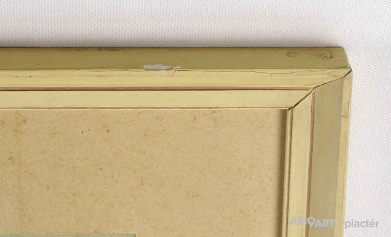 Papír akvarell üveglap mögött, vajszínű keretben. Akasztási lehetőséggel rendelkezik.