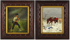 [1N101/Z058] Olaj fa festmény pár, arany betétes faragott fa keretekben. Akasztási lehetőséggel rendelkeznek. Ajándékozható állapotban vannak. Magasság: 26.5 cm Szélesség: 22.5 cm Súly: 0.995 kg