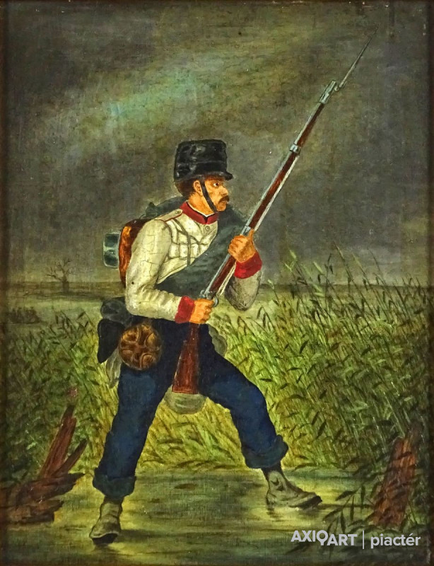 [FKA088/075] A kép mérete: 50 x 70 cm keret nélkül. Készült: Olaj, Falemez A kép Tolnay Ákos (Pest, 1861) alkotása. Jelezve balra lent "Tolnay Ákos" A festmény jó állapotban van. Keret: Sérült Magyar festők és grafikusok életrajzi lexikona I-II. Pest, 1861 - ? Festő. A bécsi akadémiáról ment a müncheni Képzőművészeti Akadémiára, ahol 1884-ben akadémiai bronzéremmel jutalmazták. Félbehagyva müncheni tanulmányait ár ebben az évben a Benczúr-mesteriskolába sietett, és itt képezte magát. Leginkább arcképeket festett, de kisebb tájképekkel is szerepelt kiállításokon. 1907-ben Budapesten, Aradon, stb. volt tárlata. A Benczúr Társaság tagja volt. Egy arcképtanulmánya a Magyar Nemzeti Galériában, Knezics Zoltán arcképe a főváros, Pucher József építész arcképe a Budapesti Építőmesterek Ipartestületének tulajdonában van. (Éber, L-MMM) Magyar festők és grafikusok adattára (Pest, 1861 - ) Bécsben és Münchenben tanult és leginkább arcképeket festett (Wekerle, Radocza, Csillag Teréz stb.), azon kívül kisebb tájképekkel is szerepelt a kiállításokon. 1907-ben Budapesten, Aradon stb. volt kiállítása. Egy arcképtanulmánya a Magyar Nemzeti Galériában, Knézics Zoltán arcképe a főváros, Pucher József építész arcképe a budapesti építőmesterek ipartestületének tulajdonába került. A Benczúr Társaság tagja volt. - MTA Művészeti lexikon I-II. festő, szül. Budapest 1861. aug. 10. Budapesten tanult és leginkább arcképeket festett (Wekerle, Radocza, Csillag Teréz stb.), azonkívül kisebb tájképekkel is szerepelt a kiállításokon. Kortárs magyar művészeti lexikon I-III. Pest, 1861 – Festő. Bécsben és Münchenben tanult. Leginkább arcképeket festett, de kisebb tájképekkel is szerepelt kiállításokon. 1907-ben Budapesten, Aradon, stb. volt tárlata. A Benczúr Társaság tagja volt. Egy arcképtanulmánya a Magyar Nemzeti Galériában, Knezics Zoltán arcképe a főváros, Pucher József építész arcképe a Budapesti Építőmesterek Ipartestületének tulajdonában van (Éber)