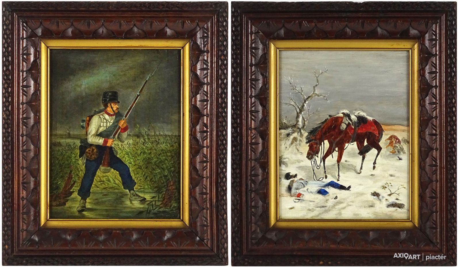 Olaj fa festmény pár, arany betétes faragott fa keretekben. Akasztási lehetőséggel rendelkeznek. Ajándékozható állapotban vannak.