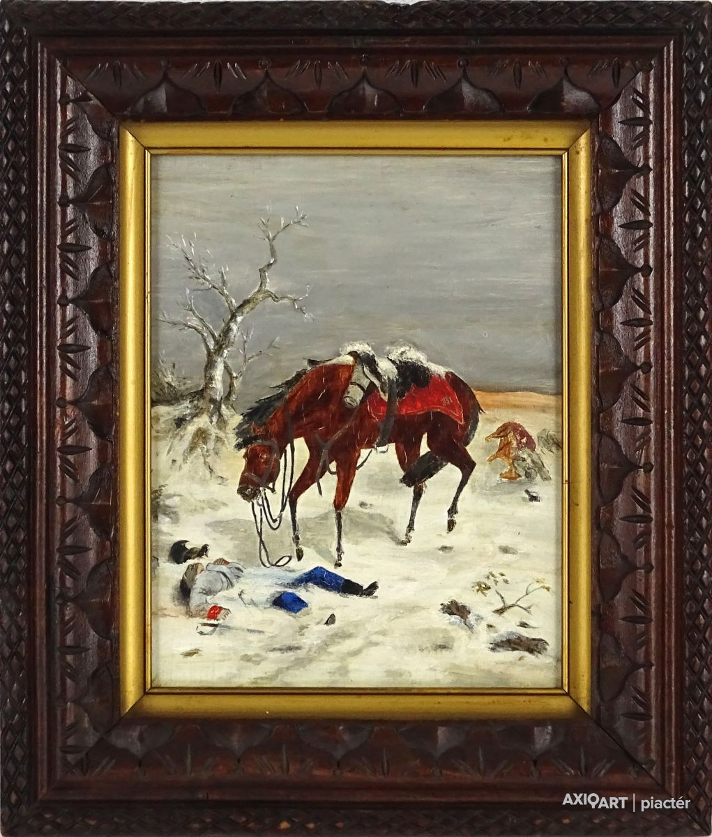[FKB651/Z067] A kép mérete: 29 x 17 cm keret nélkül. Készült: Olaj, Falemez A kép Zeller Mihály (Nagypeleske, 1859) alkotása. Jelezve jobbra lent "Zeller M" A festmény jó állapotban van. Keret: Ép Magyar festők és grafikusok életrajzi lexikona I-II. Festő. A budapesti Mintarajziskolában, 1903-ban a nagybányai szabadiskolában, Münchenben és Berlinben végezte művészeti tanulmányait. Utóbb Párizsban is eltöltött egy évet. "Tisza partján" című képét 1906-ban Párizsban díszoklevéllel tüntették ki. 1908-ban Szatmárnémetiben kollektív kiállítást rendezett műveiből. Jelentősebb alkotásai: Sír a kislány a Balaton partján, Kertek alján, Áve Mária, stb. (Éber, RI-NM) Magyar festők és grafikusok adattára A Mintarajziskolában, Nagybányán és Berlinben tanult, utóbb Párizsban töltött egy évet. Tisza partján c. képét 1906-ban Párizsban díszoklevéllel tüntették ki. 1908-ban Szatmárnémetiben kollektív kiállítást rendezett műveiből. - MTA Magyar festők és grafikusok életrajzi lexikona I-II. Műgyűjtők és kereskedők kézikönyve Festő. A bp.-i Mintarajziskolában, Nagybányán, Münchenben és Berlinben végezte műv. tanulmányait. Utóbb Párizsban is töltött egy évet. "Tisza partján" c. képét 1906-ban Párizsban díszoklevéllel tüntették ki. 1908-ban Szatmárnémetiben koll. kiállítást rendezett műveiből. Jelentékenyebb alkotásai: Sír a kislány a Balaton partján, Kertek alján, Ave Maria. (Éber)