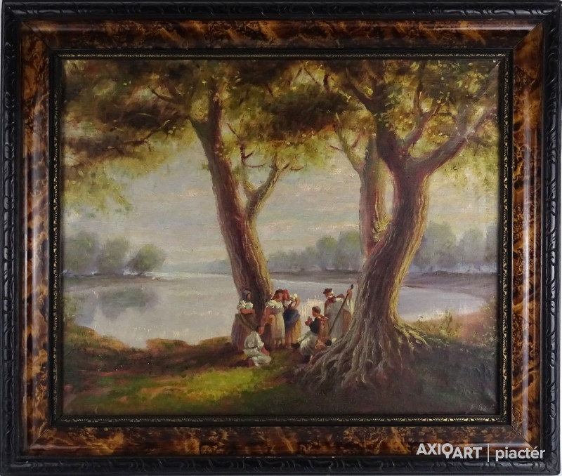 Olaj vászon festmény, régi keretben. Akasztási lehetőséggel rendelkezik.