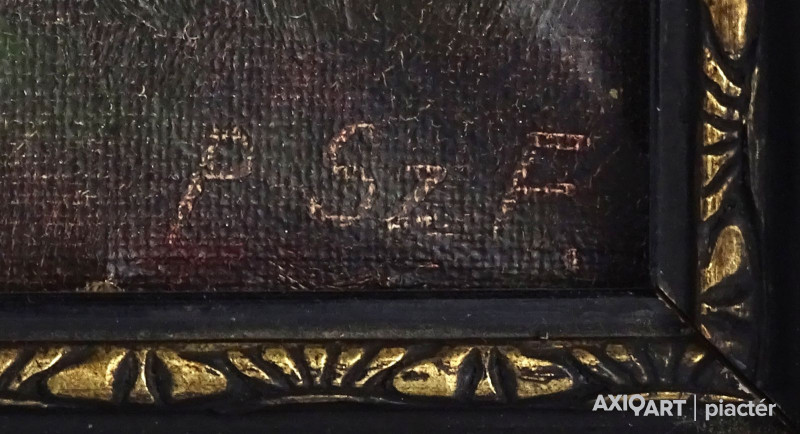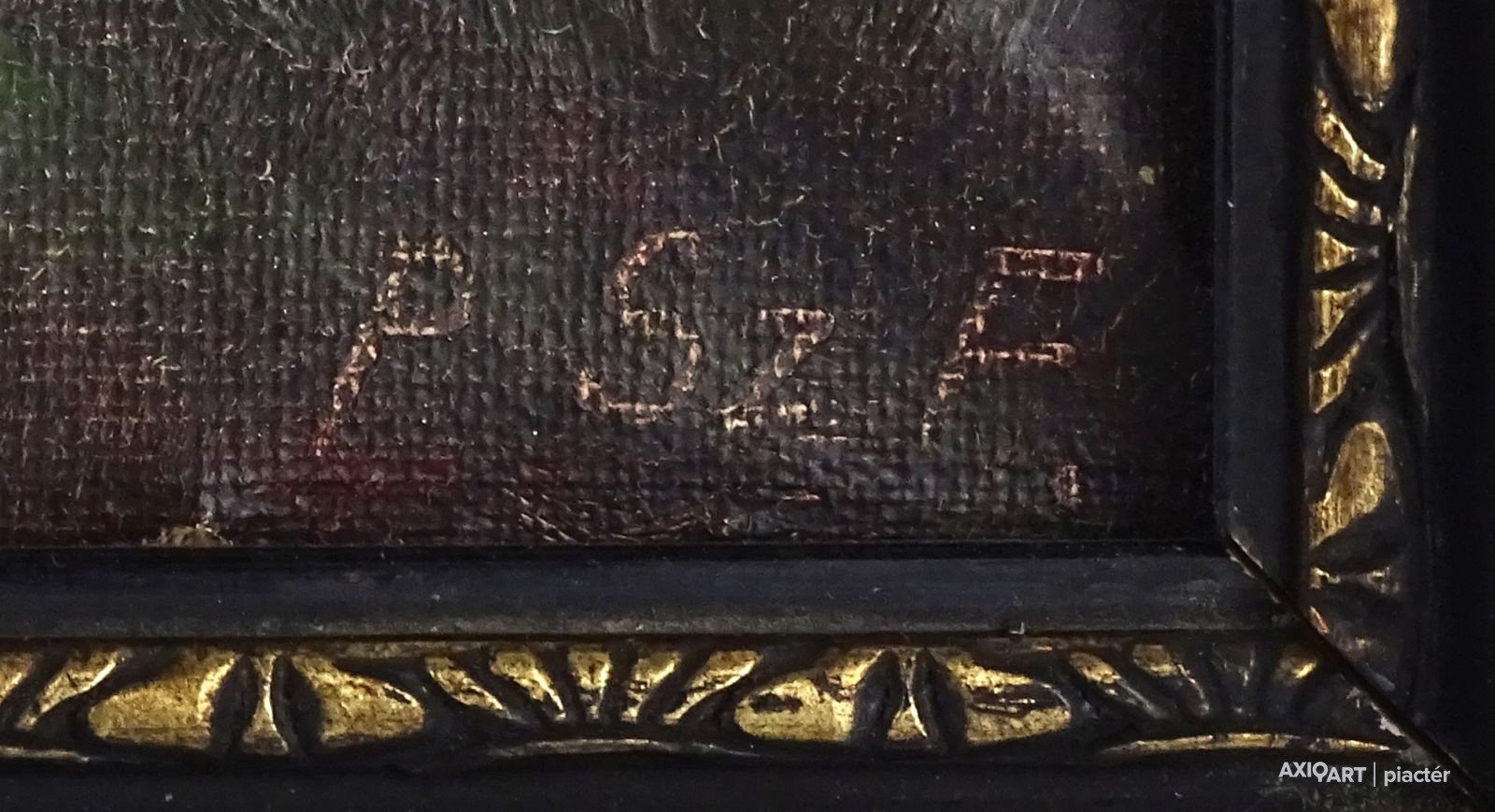 [1T020/144] Olaj vászon festmény, régi keretben. Akasztási lehetőséggel rendelkezik. Jelzés jobbra lent: P.SZ.F. (PSZF) Magasság: 52 cm Szélesség: 61 cm Súly: 1.56 kg