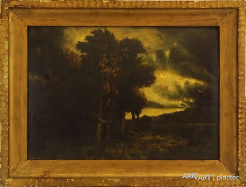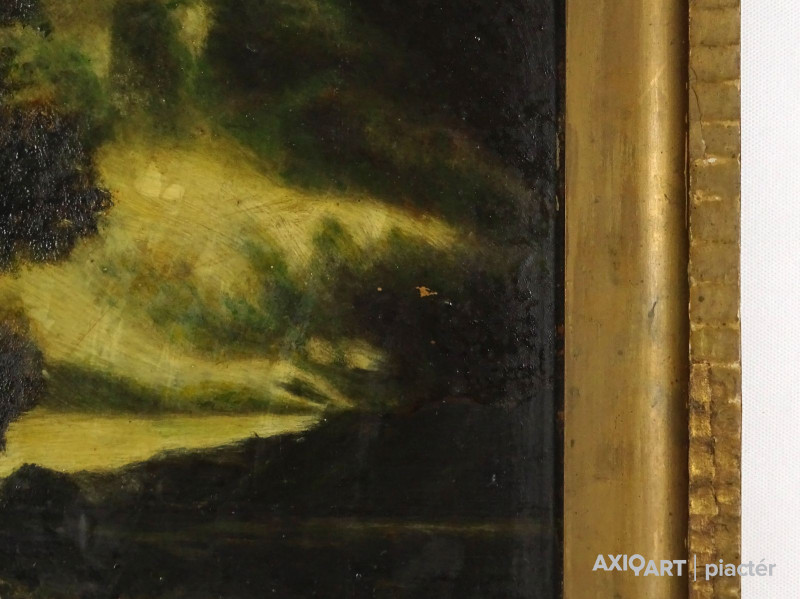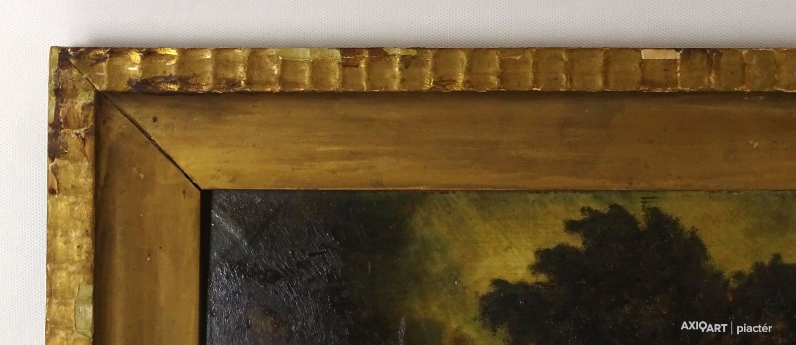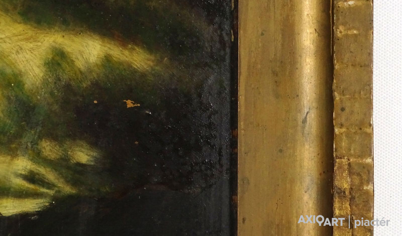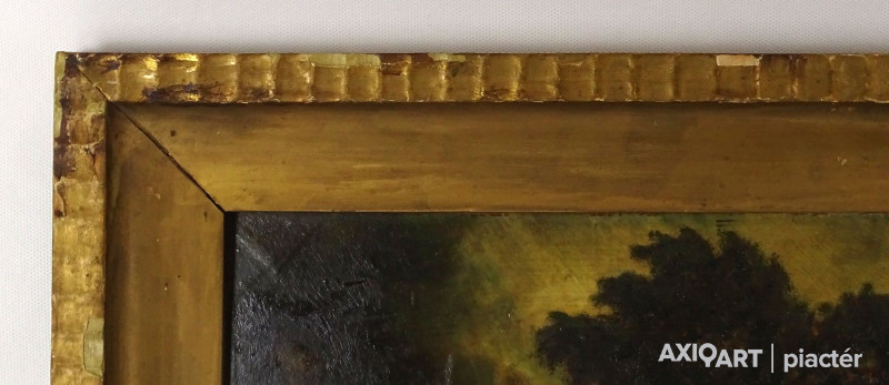 Olaj karton festmény régi kopottas aranyozott keretben. Akasztási lehetőséggel rendelkezik.