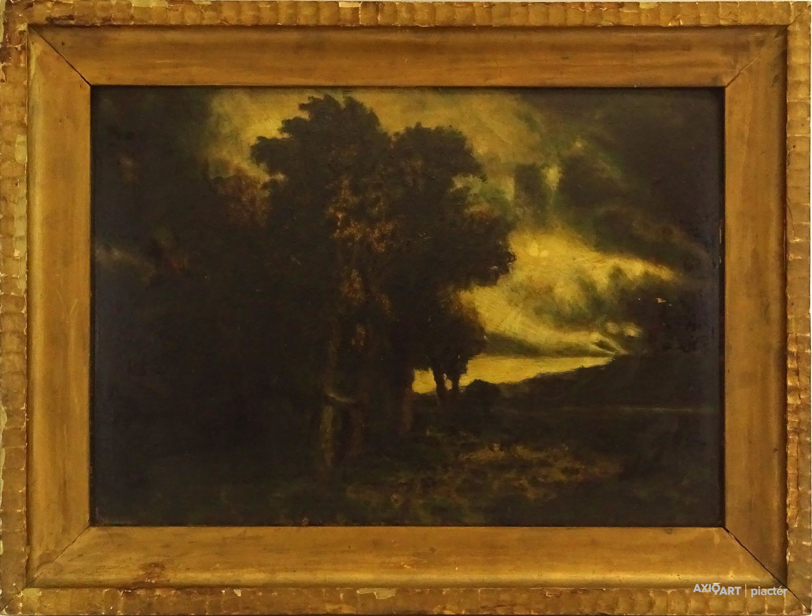 [1K101/079] Olaj karton festmény hibátlan aranyozott Blondel keretben. Azonnal falra akasztható állapotban van. Datált jelzés jobbra lent: HORVÁTH BÉLA 1933 Magasság: 60 cm Szélesség: 76 cm Súly: 2.83 kg Horváth Béla festő, szobrász Pinkafő, 1888-03-25  Elhalálozott: Pompano Beach [Florida, USA], 1973. január 6. 1904-07: Magyar Iparművészeti Főiskola, mesterei: Lórántfi Antal és Mátray Béla. Ösztöndíjjal Münchenben Balthasar Schmidtnél majd Párizsban Théophile Sternnél tanult. Tanulmányutat tett Olaszországba, Belgiumba és Hollandiába is. 1945-től Ausztriában élt, majd 1949-ben az Egyesült Államokban telepedett le. A Daytoni Egyetemen 1950-52 között professzor. Elnyerte az alábbi megtisztelő tagságokat: Fellowship International Institute of Arts and Letters, Svájc, 1961; Member of World Federation of Hungarian Artists; Centro Studi e Scambi Internazionali, Róma, 1969; Arany Érem, Accademia Internazionale Tommaso Campanella di Lettere-Arti-Scienze, Roma, 1972; Accademia Internazionali Leonardo da Vinci di Scienze-Lettere-Arti, Róma, 1974. Nyugdíjba vonulása után festészeti, szobrászati, valamint iparművészeti alkotómunkássága mellett tanfolyamokat vezetett. Eredetileg szobrásznak készült, de alkotómunkásságának súlypontja végül a tájképfestészetre került. A hegyvidékfestés specialistája, emellett számos városi látképet is készített. Amerikában festett egyházi megrendelésre is, valamint formázott a columbusi City Hall részére Kossuth Lajost ábrázoló bronz domborművet. Hosszú élete során számos plakett, szobor és emléktábla került ki keze alól. Művészete természetelvű. Derűs tájképeivel, légies délvidéki városképeivel gyakran találkozhatunk budapesti aukciókon. A Daytoni Egyetem művésznövendékeinek ~ról elnevezett zárókiállításán – Annual Horváth Memorial Student Art Show – a zsűri által kiválasztott legjobb végzős művészeti hallgatónak évről évre odaítélik az özvegye által alapított ~-díjat. Irodalom  Lege Artis Medicinae, 1992/2. Egyéni kiállítások Egyéni kiállítások 1948 • Badgastein und Umgebung in 80 Bildern, Kursaal, Badgastein (A) 1951 • South Gallery, Miami Beach Art Center, Miami, Florida 1953 • Loretto Guild, Dayton, Ohio 1966 • The Beauty of America, University of Dayton, Dayton, Ohio • Trailsend Club, Dayton, Ohio 1976 • Dayton’s Memorial Hall, Dayton, Ohio 1978 • Springfield Art Association, Springfield, Ohio. Művek közgyűjteményekben Művek közgyűjteményekben   Forrás: artportal.hu