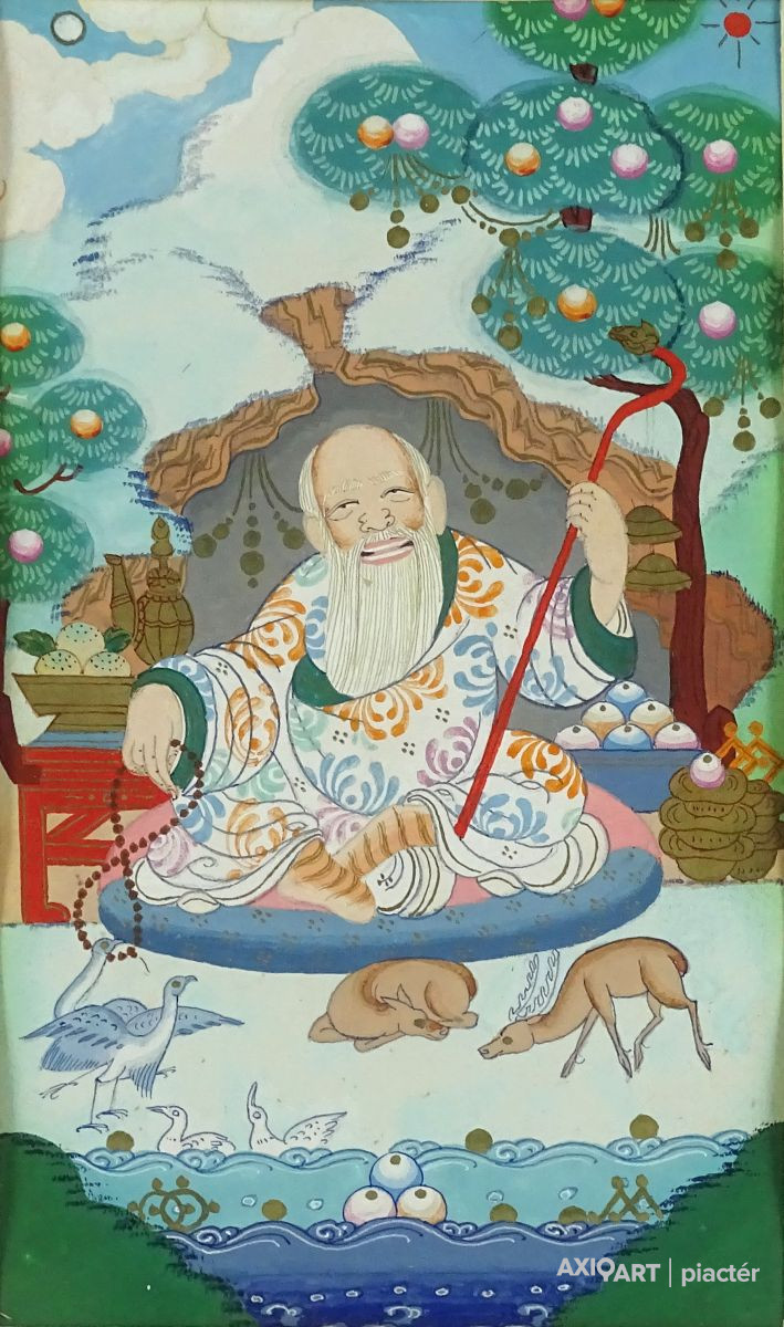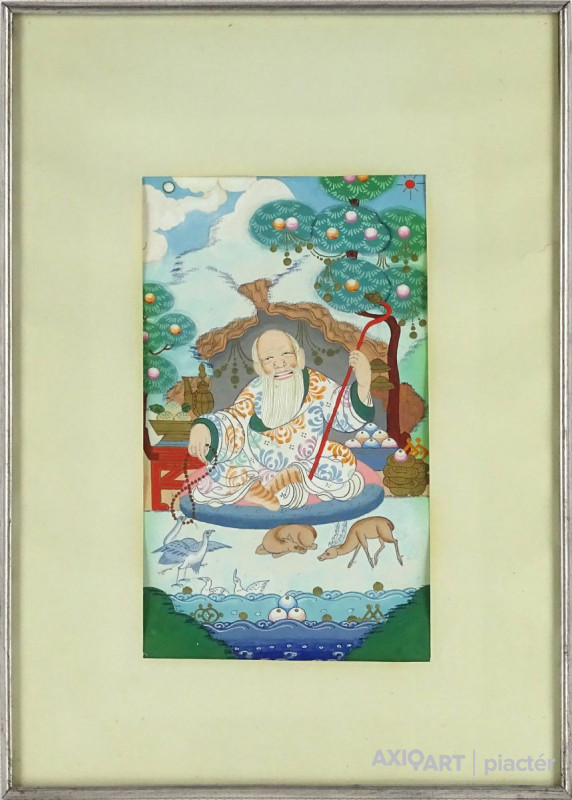 Régi fém keretben, üveglap mögött található keleti bölcset ábrázoló vegyes technika festmény papíron. Akasztási lehetőséggel rendelkezik.