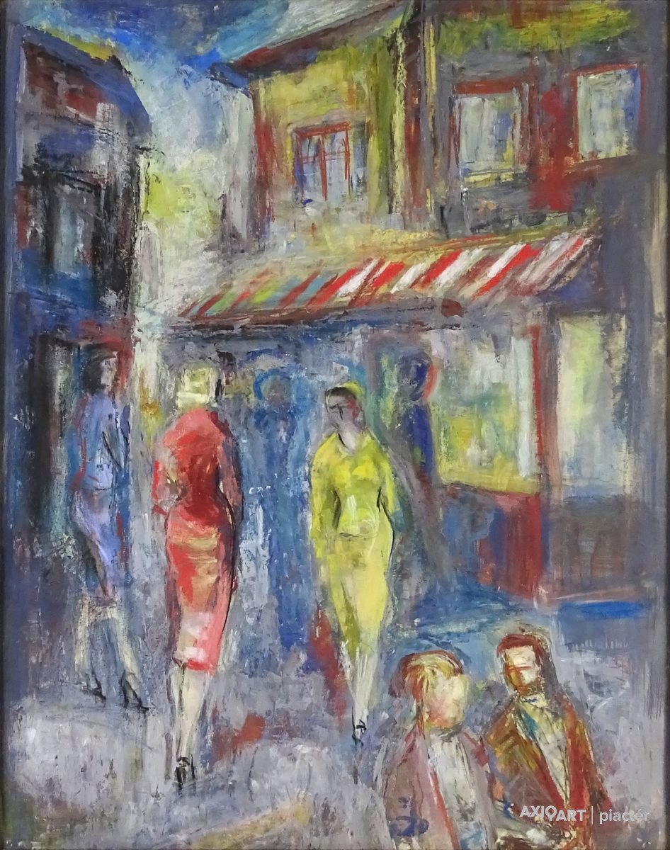 [FK2739/FL-4] A kép mérete: 33 x 48,5 cm keret nélkül. Készült: Olaj, Karton A kép Viski János (Szokolya, 1891, Budapest, 1970) alkotása. Jelezve Jobbra lent "Viski" A festmény jó állapotban van. Keret: Ép Magyar festők és grafikusok életrajzi lexikona I-II. Festő. A budapesti Képzőművészeti Főiskola Rajztanárképző szakán Zemplényi Tivadar növendéke volt. 1912-ben a kecskeméti művésztelep nyári tanfolyamán Olgyai Ferenc és Iványi-Grünwald Béla korrigálta. Tanulmányúton járt Franciaországban. 1913-tól főleg naturalista állatképeket állított ki a budapesti Műcsarnokban és a Nemzeti Szalonban. Számos tájképet is festett. A háború után több évig Dél-Amerikában dolgozott. 1929-től Budapesten tevékenykedett. 1930-ban a Független Művészek Társasága klubjában volt gyűjteményes tárlata. 1934-ben a Műcsarnokban "Hazafelé" című alkotására megkapta a Halmos Izor zsánerdíjat. "Terelés a Hortobágyon" című képének reprodukciója az 1934-es 50 pengős bankjegyet díszítette. Az állat (főleg a ló) karaktere, mozgási formaproblémái, a szabadtéri világítás színhatásai érdekelték impresszionista festőiséggel. Leggyakoribb modellje a ló. Több munkája a Magyar Nemzeti Galéria tulajdona. Művészete a természetből indul ki, annak formáihoz hű marad, képeiből mégis kiérezhető az egyéni temperamentumformáló ereje. (Éber, PZ-SzMF, KM) Magyar festők és grafikusok adattára A Képzőművészeti Főiskolán Zemplényi Tivadar növendéke. Tanulmányutakat tett Franciaországban és Dél-Amerika számos városában. 1913 óta állított ki. Főképpen állatképeket fest, bár témakörében más műfajok is szerepelnek. Az állat karaktere, mozgási és formaproblémái, a szabadtéri világítás színhatásai érdeklik impresszionista festőiséggel. Leggyakoribb modellje a ló. Festészete a természetből indul ki, annak formáihoz hű marad, képeiből mégis kiérezhető az egyéni temperamentumformáló ereje. - Irod:: Pipics Zoltán: Száz magyar festő. Bp. 1943. Magyar festők és grafikusok életrajzi lexikona I-II. Műgyűjtők és kereskedők kézikönyve Festő. A bp.-i Képzőművészeti Főiskolán Zemplényi Tivadar növendéke volt. Tanulmányúton járt Franciaországban. 1913-tól főleg naturalista állatképeket állított ki a Műcsarnokban és a Nemzeti Szalonban. A háború után több évig Dél-Amerikában dolgozott. 1929-től Budapesten tevékenykedett. 1930-ban a Független Művészek Társasága klubjában volt gyűjteményes kiállítása. 1934-ben a Műcsarnokban "Hazafelé" című festményére megkapta a Halmos Izor genreredíjat. "Terelés a Hortobágyon" c. képének reprodukciója az 1934-es 50 pengős bankjegyet díszítette. Az állat karaktere, mozgási formaproblémái, a szabadtéri világítás színhatásai érdekelték impresszionista festőiséggel. Leggyakoribb modellje a ló. Egy képe a MNG tulajdona. Festészete a természetből indul ki, annak formáihoz hű marad, képeiből mégis kiérezhető az egyéni temperamentumformáló ereje. (Éber, PZ-SzMF) Művészeti lexikon I-IV. Festő. A Képzőművészeti Főiskolán Zemplényi Tivadarnál tanult. 1913-tól főleg naturalista állatképeket állított ki a Műcsarnokban és a Nemzeti Szalonban. 1919-29 között D-Amerikában dolgozott. 1933-ban A Független Művészek Társasága klubhelyiségében volt gyűjt. kiállítása. Történelmi témákat is festett: Koppány leveretése (1938), Rákóczi búcsúja (1941). Várakozó kocsi c. képét a Nemz. Gal. őrzi.