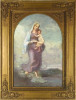 [1Q160/130] Olaj karton festmény, kis méretű oltárkép eredeti aranyozott keretében, üveglap mögött. Akasztási lehetőséggel rendelkezik. Magasság: 62 cm Szélesség: 47 cm Súly: 2.6 kg