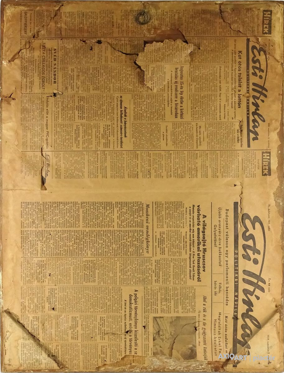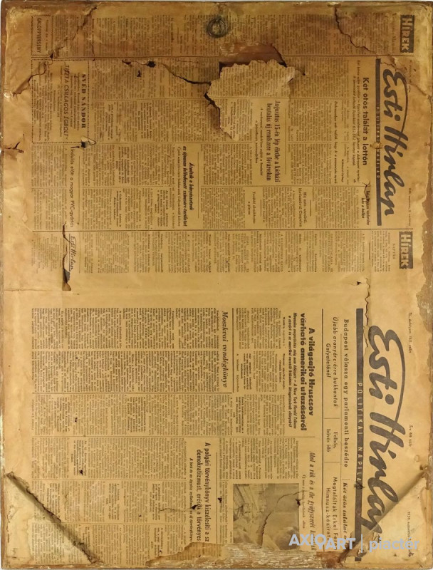 [1Y034/Z018] Olaj vászon festmény, üveglap mögött, szép állapotú képcsarnokos keretben. Akasztási lehetőséggel rendelkezik. Jelezve jobbra lent: Balog A. Hátoldalán a kereten Képcsarnok Vállalat címke töredék látható, rajta felirat: A művészeti alkotás címe: LEÁNY Magasság: 86 cm Szélesség: 66 cm Súly: 5.37 kg Balogh András (képei szignóján az 1960-as évektől Balog) (Budapest, 1919. március 14. — Budapest, 1992. március 18.) festőművész, kerttervező, művészeti szakíró, c. egyetemi tanár. Életpályája és munkássága Apai ágon a géresi Baloghok Szatmár megyéből a dél-erdélyi Alsó-Fehér megyébe származtak, anyai fölmenői a Székelyföldön: Csíkban, ill. Háromszéken éltek. Szülei az 1900-as évek elején költöztek Budapestre. A Képzőművészeti Főiskolán 1937-ben kezdte meg tanulmányait Burghardt Rezső tanítványaként. 1950-töl 1980-ig a Kertészeti Főiskolán (később Kertészeti Egyetem) tanított a kerttervezési tanszéken művészettörténetet, szabadkézi rajzot, ábrázoló geometriát és kertesztétikát. Az Iparművészeti Főiskolán óraadóként kertesztétikát adott elő. 1971-ben részt vett a firenzei Palazzo Strozziban rendezett biennálén, ahol aranyéremmel tüntették ki. Rendszeres önálló és csoportos kiállítások sora következett ezután nemcsak Magyarországon, hanem Olaszország és Németország számtalan városában, kiállított Finnországban, Kanadában is. Egyéni kiállításai gyakran katalógusokkal jelentek meg.[1][2][3] Nyaranként Tihanyban vagy Zsennyén alkotott. Festészetét poétikus realizmus jellemzi, dekoratív elrendezésű kompozíciói és lágy színvilága bensőséges hangulatot, szépséget, harmóniát árasztanak. (Lány egyszarvúval; Alvó, Emberpár és táj, stb.) Nagyon sok tájképet és portrét festett, történelmi személyiségekről is, 1978 és 1989 közt megfestette Mindszenty József bíboros portréját. Képei a Magyar Nemzeti Galériában, vidéki múzeumainkban, olasz, német, finn, észak-amerikai, kanadai, ausztráliai gyűjteményekben vannak.
