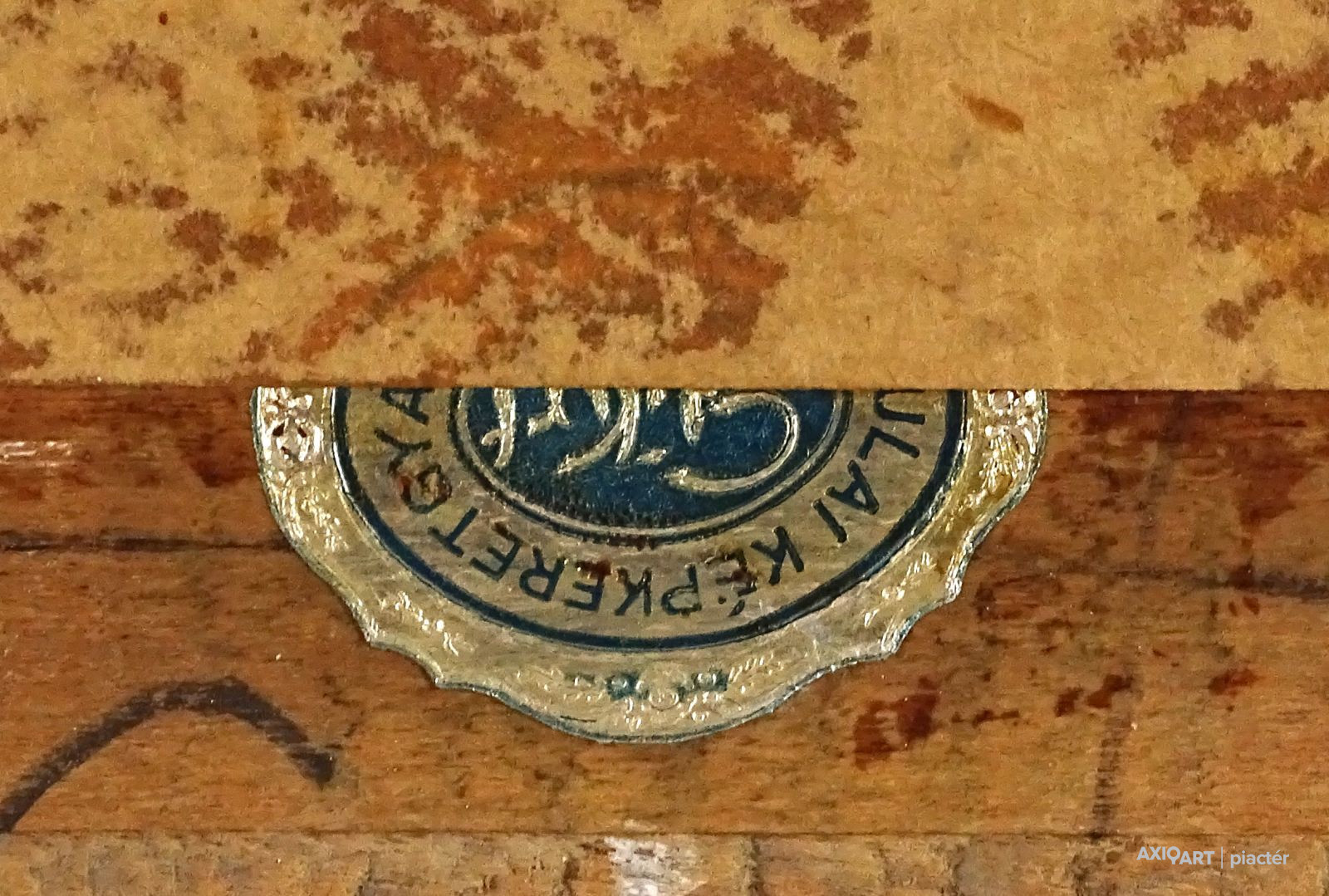 [FK0914/BX-2] A kép mérete: 15,5 x 25,5 cm keret nélkül. Készült: Olaj, Falemez A kép Magyar-Mannheimer Gusztáv (Pest, 1859, Budapest, 1937) alkotása. Jelezve Középen lent "Magyar Mannheimer" A festmény jó állapotban van. Keret: Új Magyar festők és grafikusok életrajzi lexikona I-II. Festő. Előbb a fővárosi Mintarajziskolában, később Bécsben H. Makartnál végzett művészeti tanulmányokat. 1878-tól a müncheni Képzőművészeti Akadémia növendéke lett. Itt a rézkarcoló Raab-nak, utána Löfftznek és Wagner Sándornak az irányításával tanult olyan sikerrel, hogy 1880-ban ezüstérmet, 1881-ben pedig dicsérő oklevelet és budapesti ösztöndíjat is kapott. Budapestre hazatérve, Benczúr-mesteriskolájában tanult a kapott ösztöndíjjal. Ekkor mutatkozott be a budapesti Műcsarnok közönségének az "Olvasó öregasszony", "A vőlegény jó kilátásai" című éleképekkel és néhány vázlattal. Később Bécsben H. Makartnak lett segédje egy dekoratív munkánál. A '90-es évek végén a nagybányai művésztelepen is megfordult. Ezután következett gyakran megismételt olaszországi útja. Még a sugárzó verőfény országában is híven kísérte a tompító müncheni tónus. 1901-ben "Esti hangulat" című alkotásával Társulati-díjat, 1902-ben állami kis aranyérmet nyert. 1910-ben a Velencei Biennálén "Tavasz" című festményét a Velencei Modern Képtár számára vásárolták meg. 1912-ben állami nagy aranyérmet nyert. Több ízben vett részt a budapesti Műcsarnok és a Nemzeti Szalon seregszemléin. 1913-ban, 1920-ban, 1922-ben, 1929-ben és 1933-ba kollektív kiállítása volt az Ernst Múzeumban. Stílusát a romantikus, a naturalizmus és a Makart-féle akadémikus dekorativizmus ötvözete jellemezte. A Szinyei Társaság alapítói közép tartozott. Illusztrálta Bródy Sándor, Mikszáth Kálmán, stb. műveit. Számos műve megtalálható a Magyar Nemzeti Galériában. Önarcképe a Magyar Történeti Képtárban van. (ML, Éber, L-MMM) Magyar festők és grafikusok életrajzi lexikona I-II. Műgyűjtők és kereskedők kézikönyve Festő. Előbb a fővárosi Mintarajziskolában, később Bécsben H. Makartnál, Münchenben pedig L. von Löfftznél és Wagner Sándornál tanult. Budapestre visszatérve, Benczúr-mesteriskolájában kapott több éves ösztöndíjat. 1901-ben "Esti hangulat" c. alkotásával Társulati-díjat, 1902-ben állami kis aranyérmet nyert. 1910-ben a Velencei Biennálén "Tavasz" c. képét a Velencei Modern Képtár számára vásárolták meg. 1912-ben állami nagy aranyérmet kapott. Több ízben szerepelt a Műcsarnok és a Nemzeti Szalon kiállításain. 1913-ban, 1920-ban, 1922-ben, 1929-ben és 1933-ban kollektív tárlata volt az Ernst Múzeumban. Stílusát a romantikus, a naturalizmus, és a Makart-féle akadémikus dekoratizmus ötvözete jellemezte. A Szinyei Társaság alapítói közé tartozott. Illusztrálta Bródy Sándor, Mikszáth Kálmán, stb. műveit. Számos műve megtalálható a MNG-ban. Önarcképe a MTK-ban van. (ML, Éber) Magyar festők és grafikusok adattára A bécsi akadémián Makart, a müncheni akadémián pedig Wágner tanítványa volt. Hazatérve a Benczúr-mesteriskola tagja lett. Stílusát a romantikus, a naturalizmus és a Makart-féle akadémikus dekoratizmus ötvözte, jellemezte. 1901-ben Esti hangulat c. képével társulati díjat, 1902-ben állami kis aranyérmet, 1912-ben állami nagy aranyérmet nyert. Tavasz c. képét 1910-ben megvásárolta a velencei Modern Képtár. Több ízben szerepelt csoportos kiállításon a Nemzeti Szalonban és az Ernst Múzeumban. Képei találhatók a MNG-ban. Számos illusztrációt is készített (Mikszáth Kálmán és Bródy Sándor műveihez stb.). Önarcképe a Magyar Történelmi Képcsarnokban található. Egyik alapító tagja volt a Szinyei Társaságnak. - Irod.: Herman Lipót: Magyar-Mannheimer Gusztáv. Magyar Művészet, 1937. Művészeti lexikon I-IV. Festő. Előbb a Mintarajziskolában, majd Bécsben H. Makartnál, Münchenben L. von Löfftznél és Wagner Sándornál tanult. Bp.-re visszatérve Benczúr mesteriskolájában kapott több éves ösztöndíjat. 1910-ben a Velencei Biennále kiállításán egyik képét (Tavasz) a velencei Modern Képtár számára megvásárolták. Színes, oldott előadású tájképeivel, sötétes hangulatú alakos kompozícióival a kiállítások állandó szereplője volt. Illusztrálta Bródy, Mikszáth stb. műveit. A Szinyei Társaság alapító tagjai közé tartozott, s több állami díjat nyert. Kampis Antal Művészeti lexikon I-II. Festő. Münchenben és Bécsben végezte tanulmányait. Képei túlnyomó részének tárgyát gyakori olaszországi tanulmányútjaiból merítette. Ilyenekkel szerepelt a Műcsarnokban a nyolcvanas évek óta, de temperamentumos előadása, mélytüzű színei csak nagysokára szereztek neki elismerést. A Campagna, sziklás, pikáns olasz tájai, kavargó felhői, patetikus hangulatai, élénk és egyéni előadása végre legjobb művészeink sorába emelték. Ily művei: Est a Campagnában, Esti hangulat, Erdőszéle stb. Eleinte inkább világos színhatású, utóbb mélyrefogott barnából és zöldből formált színharmóniája jelentkezik néhány alakos képén és tanulmányfején is (Libapásztorok, Arckép, Pulykapásztorlány)