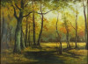 [1Y029/Z018] Olaj farost festmény, üveglap mögött, hibátlan képcsarnokos keretben. Hátoldalán Képcsarnok Vállalat papír címkéje: A művész neve: SCHÉNER MIHÁLY A kép címe: TÁJ Magasság: 66.5 cm Szélesség: 86 cm Súly: 6.54 kg Schéner Mihály festő, grafikus, szobrász, keramikus, bábtervező Medgyesegyháza, 1923-01-9 Elhalálozott: Budapest, 2009. május 11. Honlap: http://www.kormendigaleria.hu/kiadvany.html 1942-1947: Magyar Képzőművészeti Főiskola, tanára: Rudnay Gyula. 1978: Munkácsy-díj; 1984: érdemes művész; 1989: kiváló művész; 1995: Kossuth-díj. 1992-től a Magyar Művészeti Akadémia, 1993-tól a Széchenyi Irodalmi és Művészeti Akadémia tagja. 1956-ig tanított. 1982: Nagyatádi Faszobrász Alkotótelep, 1985: Nemzetközi Acélszobrász Alkotótelep, Dunaújváros. A stílusában felismerhető, mégis sokféle műtárgyat létrehozó ~ gazdag, állandóan alakuló életműve a folyton változó világban helyét kereső, az alkotói szabadságot megvalósító XX. századi képzőművész példázata lehetne. Magát expresszív-szürrealista alkotónak nevezi. Egyaránt dolgozik festékkel, textillel, fával, fémmel. Rajzol, szerkeszt, farag, épít, gyúr, varr és ragaszt, felhasználja a mézesbábok öntőformáit. Festő, rajzoló, textilszobor- és bábkészítő, fazekas, asztalos, esztergályos. Háromlépcsős folyamatban gondolkozik: rajzban tervez, majd fest, szobrot készít, “formába önt”, mindig a végső plasztikai megoldást keresi. Ami állandó és mégis játékosan változékony megjelenésű Schéner művészetében, az a gyermekkori emlékek által meghatározott népi mesterségek iránti tiszteletet kifejező motívumkincs, a tárgyi folklór formakészlete, amely már-már kézjegyként ismétlődik munkáin. Mitologikussá nőtt képzelete új lényeket teremt, pl: a Pigulát, amely disznótestű, emberfejű teremtmény. Schéner festményein a szürrealista motívumokat konstruktív szerkezetbe rendezi, a geometriát és az organikus természeti motívumokat egyaránt beépíti műveibe. A népi, népművészeti formakincsből merített lovas huszárok, betyárok, szegénylegények cifra szűr mentéje, piros csákója, fekete csizmája, az önálló életet élő zsinórdíszek és mézeskalács bábok, a kiskocsik a gyermekkori vásárok, búcsúk színes forgatagába vezet. A primér motívumokat aztán felváltják a vastagon felhordott felületbe karcolt jelek, vonalhálózatok, amelyek a játszó gyermek homokba rajzolt ábráit, a pásztorember fába vésett üzeneteit, az ősember barlang falába rótt mágikus jeleneteit idézik meg. A művész pillanatnyi érdeklődésének megfelelően a színek búvópatakként tűnnek el és jelennek meg ismét. A 60-as években leginkább a formákkal való játék érdekelte, a festmények felülete egyre gazdagodott: a táblaképek felületén applikációk jelentek meg, vagy lemállasztott rétegek hagyták maguk után hiányukat, motívumok nélküli ősformák, archetipikus képzetek bukkantak fel művészetében. A véletlenszerűnek látszó rétegekkel való játék azonban tudatos komponálás eredménye, amely később nyilvánvaló ritmusnak és formai szerkesztettségnek adja át a helyét, mint a Törvénytáblák c. sorozaton. A különböző művészi kifejezési formák egymásra termékenyítő hatással vannak, át- meg áthatják egymást. Textilszobrai, amelyekkel új műfajt teremtett, ugyanazzal az automatikus, expresszív-szürrealista módszerrel készülnek, mint festményei. A hagyományosan a népművészetben alkalmazott anyag, a filc lehetőséget ad a népi formakincs felelevenítésére, amely azonban a művész különös szürrealista átiratában jelenik meg. A szívekkel kivarrt, zsinórdíszes Posztókotlós c. művén mézesbábok lógnak, hátán huszárok lovagolnak. Egész sor textilből készült kéz-plasztikát alkot, amelyeket az ujjakra rávarrt díszekkel öltöztet, személyesít meg. A színes-különös világból aztán ~ újra puritán képi és formai rendbe juttatja el a nézőt, majd nemsokára tépett, gyűrt, vágott, csorgatott, repedezni hagyott szenvedélyesen vonagló képi felületeket hagy hátra. Schéner készített apró gyermekjátékokat, térstruktúra-tereket, mászókákat is. A magyar népi formák mellett szürreális játékaiban gyakran alkalmaz görög mitológiai alakokat, “elkentaurosodott” lovakat, Gorgó-fejeket, sellőket, hárpiákat, Pán-ábrázolásokat. Schéner nemcsak saját művészetéről publikál, hanem művésztársairól is számos írása jelenik meg, elsősorban az Új Auróra c. folyóiratban, amelynek egy ideig főmunkatársa volt. Irodalom kiállítása, Magyar Építőművészet, 1962/4. Húsz év után, Művészet, 1965/4. BOZÓKY M.: ~, Tiszatáj, 1968/5. PERNECZKY G.: Nincs uborkaszezon, Élet és Irodalom, 1969. augusztus 8. BARÁNSZKY-JÓB L.: ~, Művészet, 1969/9. LÁSZLÓ GY.: ~ kaposvári kiállítása, Jelenkor, 1969/4. MAJOR M.: Pásztorok, betyárok, huszárok - kezek, Tükör, 1970. szeptember 15. FRANK J.: Bemutatjuk ~t, Élet és Irodalom, 1972. május 6. ról kiállítása ürügyén, Képzőművészeti Almanach, Budapest, 1972 Sötétkék kokasok, Élet és Irodalom, 1973. szeptember 9. MAJOR M.: ~ játékai, Élet és Irodalom, 1974. július 27. BARTA J.: Egy különös művész, Alföld, 1974/6. VADAS J.: Szárnykészítők, Élet és Irodalom, 1975. október 4. JUHÁSZ F.: A halál ellen játszani, Élet és Irodalom, 1975. május 17. PAP G.: Kincsek és műkincsek, Művészet, 1975/6. P. SZŰCS J.: Az utak kettéválnak, Művészet, 1978/3. Békési művészet, Művészet, 1978/7. SZAMOSI F.: ~ [kismonográfia], Budapest, 1978 VADAS J.: Játék a játékkal, Élet és Irodalom, 1979. augusztus 18. NÉMETH L.: ~ műveiről, Művészet, 1979/4. MIKLÓS P.: Mit akar ez a múzeum?, Művésze