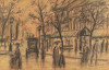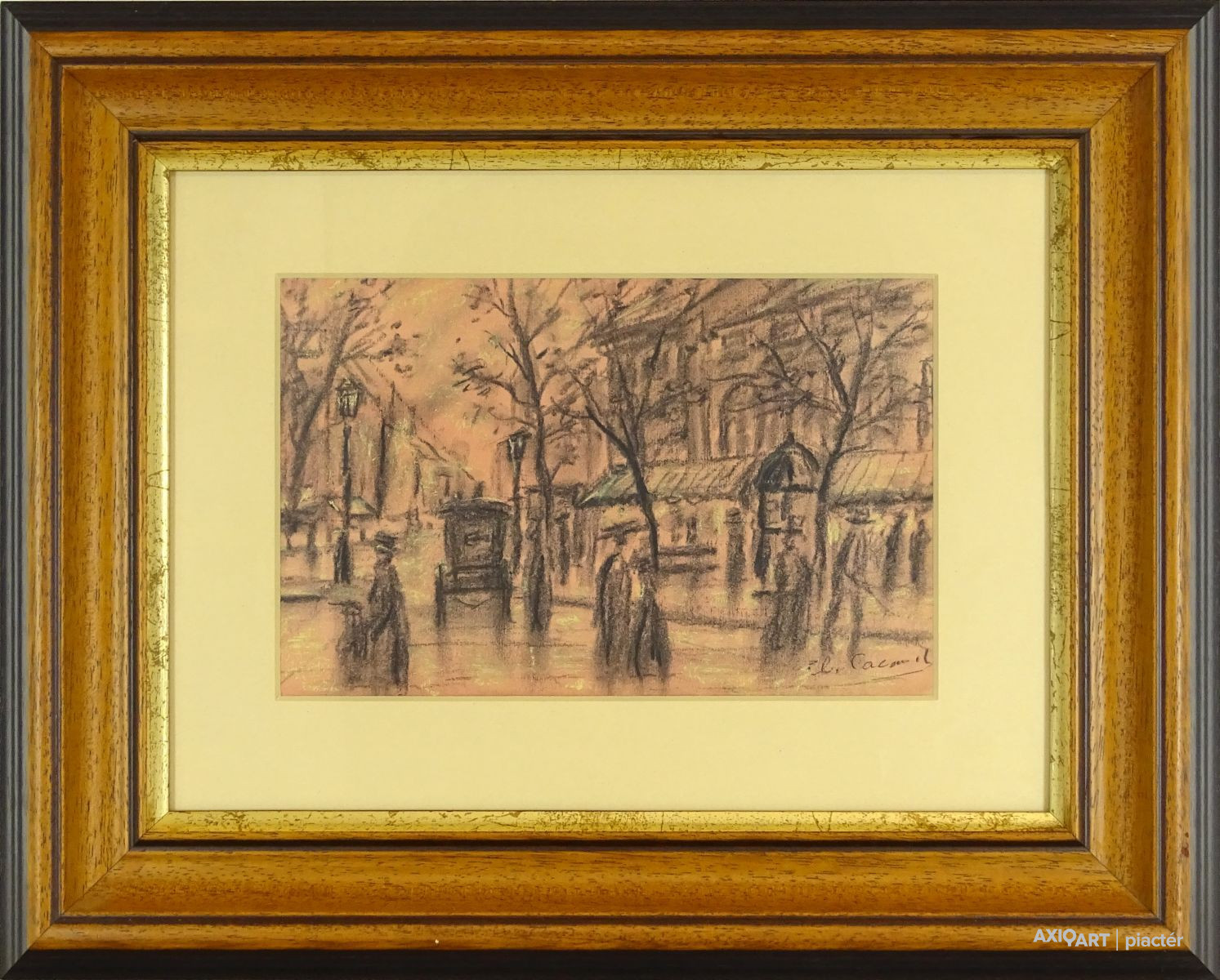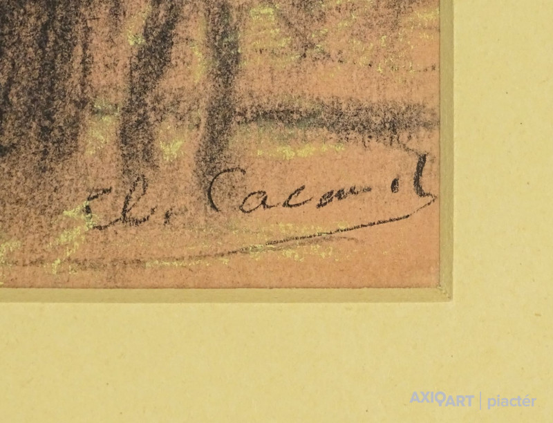 Papír, szénrajz festmény üveglap mögött, paszpartuban, hibátlan keretben. Azonnal falra akasztható állapotban van.