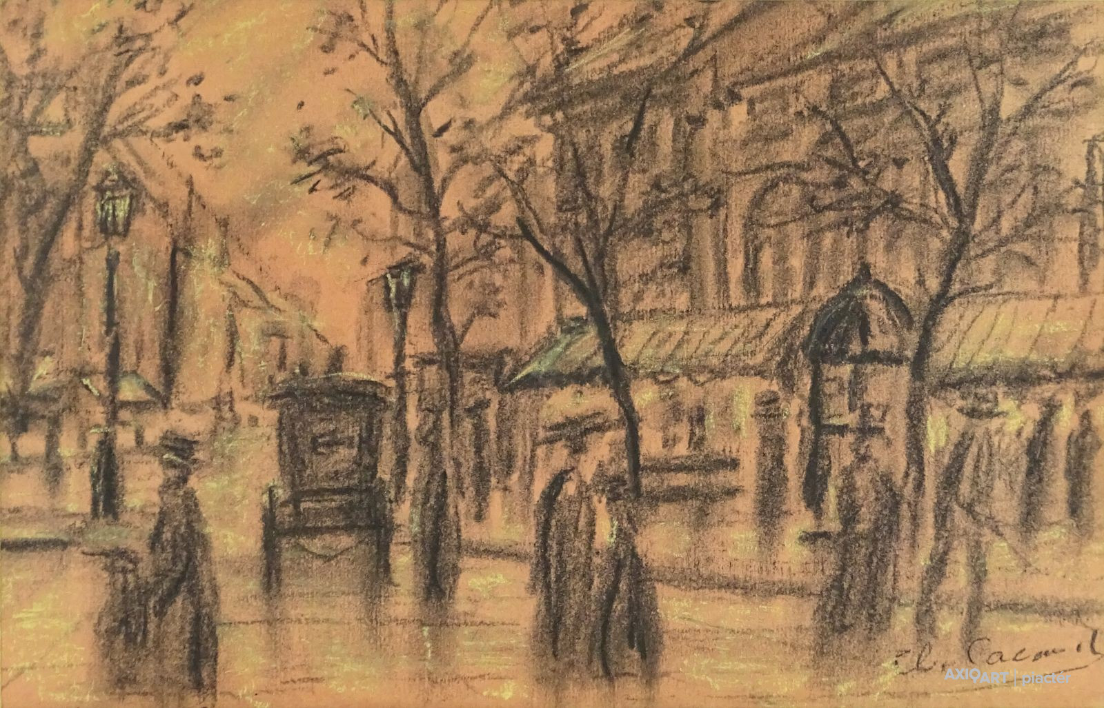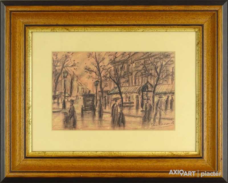 [FKB603/FL-1] A kép mérete: 60 x 49 cm keret nélkül. Készült: Pasztell, Papír A kép Jankay Tibor (Békéscsaba, 1899, Los Angeles, 1994) alkotása. Jelezve jobbra lent "Jankai Tibor" A festmény jó állapotban van. Keret: Ép Magyar festők és grafikusok életrajzi lexikona I-II. Műgyűjtők és kereskedők kézikönyve Festő és grafikus. A bp.-i Képzőművészeti Főiskolán végezte tanulmányait. Olasz-, Német- és Franciaországban, val. Ausztriában volt tanulmányúton. 1947-ben "Mártírok" címen megrázó erejű lapokat ad közre a békéscsabai Tevan kiadásában. Első budapesti kiállítása után már a bécsi Albertinában láthatók alkotásai, hogy azután New York, Cleveland, San Francisco, Pasadena és Los Angeles kiállító termei fogadják műveit. Los Angeles-ben, a George Pepperdine College tanáraként működött. 1971-ben Békéscsabán 43 temperát, 60 szén- és krétarajzot állított ki. Festői világa: házak, utcák, csatornapart, kertek és természetesen ebben a tájban élő, munkálkodó emberek, mind-mind gyermekkori emlékek. Szobrászattal is foglalkozott. (D.J.: Műv.-1971/4) Magyar festők és grafikusok életrajzi lexikona I-II. Festő, grafikus. 1918-ban kezdte meg tanulmányait a budapesti Mintarajziskolában Szinyei M. Pál és Balló Ede növendékeként. Később Vaszary Jánosnál, majd a párizsi Julian Akadémián, Drezdában és Bécsben tanult. Már a '20-as évek elejétől kezdve rendszeresen kiállította munkáit, kezdetben Békéscsabán, Gyulán és Orosházán, majd 1926-tól Budapesten, az Ernst Múzeumban a KUT művészeivel együtt, s külföldön is. A kritika már korai munkái kapcsán érzékelte Jankay biztos kompozíciós készségét; azt a képességét, hogy kevés eszközzel és kevés motívummal is képes rendet és feszültséget teremteni a képfelületen. A grafikák erejét és megkapó báját első komoly külföldi kritikája (Duisburg, 1927) is felismerte és méltányolta. Jankay első érett korszaka a '20-as évekre tehető. E korai munkái elsősorban szén- és színes krétarajzok. Párizsban dinamikus lendületű városképeket készített, az évtized végétől egyre gyakrabban használta az olajfestéket: szelíd és tompa színekkel dolgozott, témája az egyszerű emberek világa volt. E lírai, már-már idilli alkotásain az expresszionizmus erős formaegyszerűsítő tendenciája érvényesült. Az 1930-40-es évekre tehető annak a realista ízű stílusnak a kibontakozása, melynek fő motívuma ismét az egyszerű ember volt. A világos, derűs színes elkomorultak, modelljei öreg és fáradt emberek voltak. Ennek a stílusnak betetőzése a munkaszolgálatos megpróbáltatásokat, s a nejének lágerélményeit feldolgozó Mártírok c. megrázó erejű rajzalbum, melyet 1947-ben a békéscsabai Tevan Kiadó adott közre. Végső emigrációja előtt két ízben is megfordult az Egyesült Államokban. 1929 októberétől, 934 őszétől minkét alkalommal csaknem egy-egy évet töltött a USA-ban. Először Ohióban, majd öt évvel később Los Angelesben. Mindkét ott-tartózkodása komoly anyagi és művészi sikert jelentett; díjakat nyert, nagy múzeumokban szerepeltették képeit, vásároltak tőle. 1948-ban végleg kivándorolt Kaliforniában, ahol 1948-tól a University of Redlands tanársegéde, 1949-től pedig a Peperdine College tanára volt 1977-ig. Rajzot, festészetet, mintázást oktatott, s művészeti kurzusokat vezetett. Amerikában is szinte mindvégig a hazai élményeit és emlékeit festette újra, egyes motívumokat több példányban, s több variációban is. Első budapesti kiállítását követően már a bécsi Albertinában láthatók művei, hogy utána New York, Cleveland, San Fransisco, Pasadena és Los Angeles kiállító termei fogadják alkotásait. 1971-ben Békéscsabán 43 temperát, 60 szén- és krétarajzot állított ki. Festői világa: házak, utcák, csatornapart, kertek és természetesen ebben a tájban élő, munkálkodó emberek, mind-mind gyermekkori emlékek. A '80-as évek volt Jankay legtermékenyebb korszaka, festészetének legérettebb művei ekkor születtek. Ezeken nagy, összefoglaló formák uralkodnak, erős, tiszta színek ragyognak; kisméretű kompozícióit is nagyvonalúság, erős monumentális érzékre valló látásmód jellemezte. Témái csendéletek, arcok és fejek, a tengerparti sétányok alakjai, és a hazai emlékek. Vagyonát és hagyatékát (mintegy 3000 festmény, 5000 grafika, 278 db. szobor, több mint 300 vázlatkönyv, 143 tételes etnográfiai gyűjtemény, kb. 800 kötetes könyvtár) szülővárosára hagyta. (Bellák Gábor adatközlése nyomán, D.J.: Műv. 1971/4) Magyar festők és grafikusok adattára A Képzőművészeti Főiskolán tanulmányait befejezve fölkereste az európai művészet legfontosabb helyeit: Olasz- és Franciaország, valamint Ausztria legjelentősebb gyűjteményeit. Első budapesti kiállítása után már a bécsi Albertinában láthatók művei, hogy aztán New York, Vleveland, San Fransisco, Pasadéna és Los Angeles kiállító termei fogadják alkotásait. 1947-ben megrázó erejű lapokat ad közre a békéscsabai Tevan kiadásában Mártírok címen. Los Angelesben és George Pepperdie College tanáraként működik. 1971-ben Békéscsabán állított ki 43 kisebb temperát, grafikából 60 szén- és krétarajzot. - Irod.: Jankay Tibor kiállítása Békéscsabán. Művészet, 1971. 4. sz. Kortárs magyar művészeti lexikon I-III. [született Deutsch Tibor, később Jankay-Deutsch, olykor Jankai, végül Jankay] 1918 őszén kezdte meg tanulmányait a budapesti Mintarajziskolában Szinyei Merse Pál, Balló Ede növendékeként. Később Vaszary Jánosnál, majd a párizsi Julian Akadémián, Drezdában és Bécsben tanult. Már a 20-as évek elejétől kezdve rendszeresen kiállította munkáit, kezdetben Békéscsabán, Gyulán, Orosházán, 