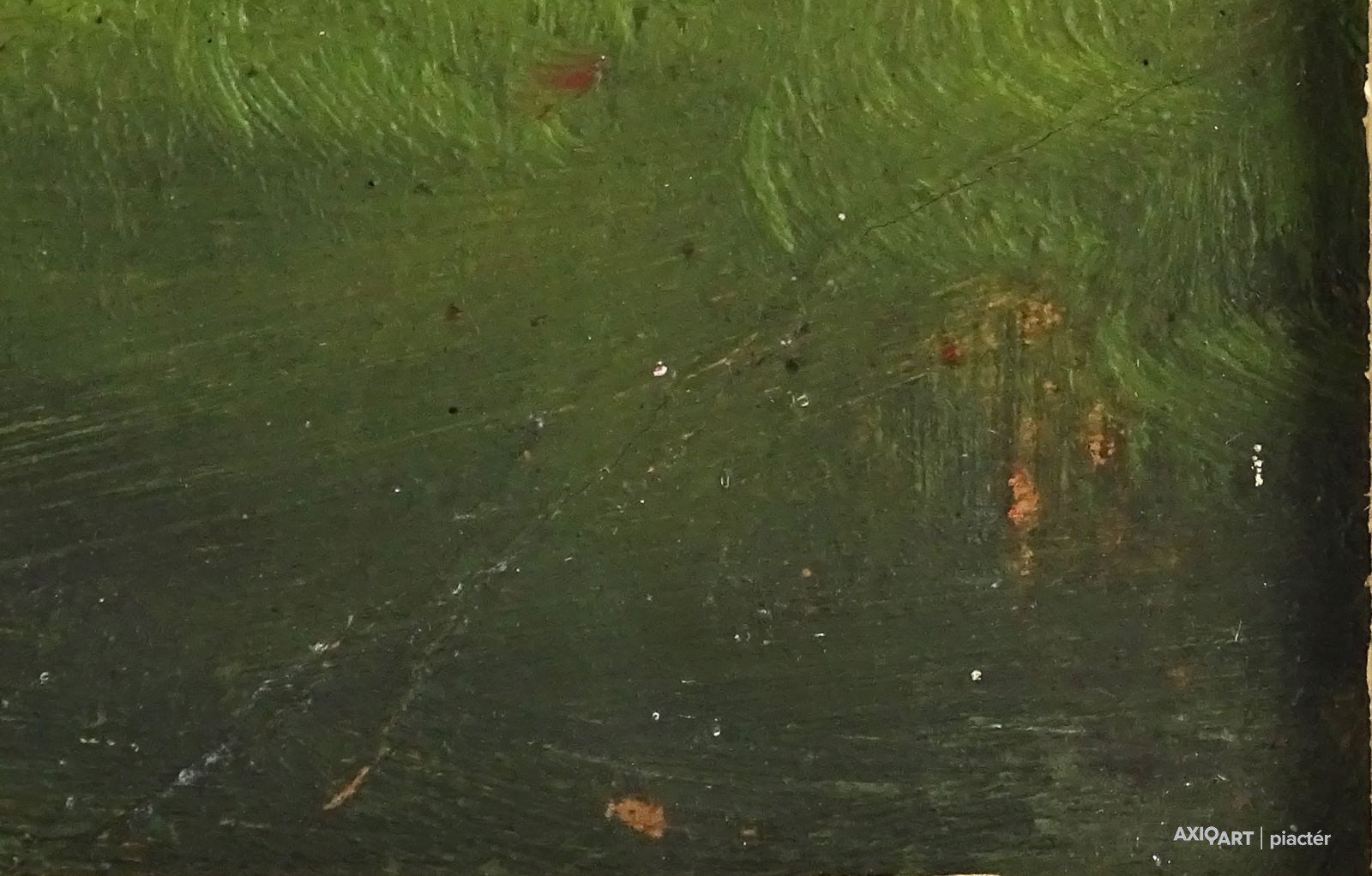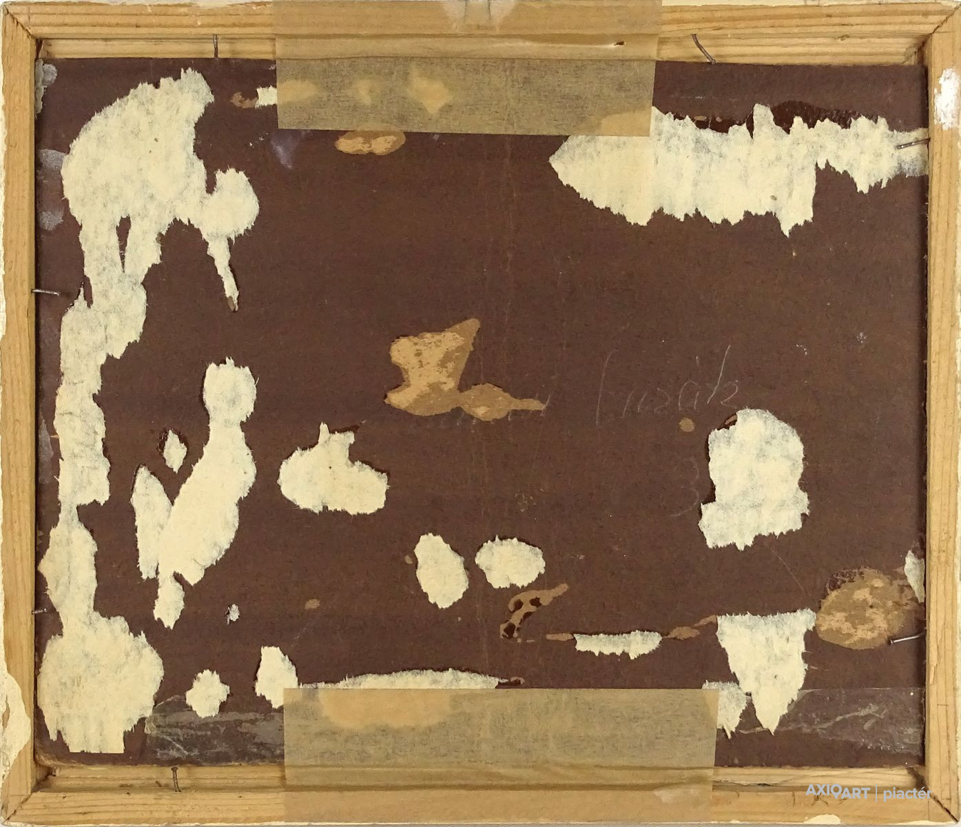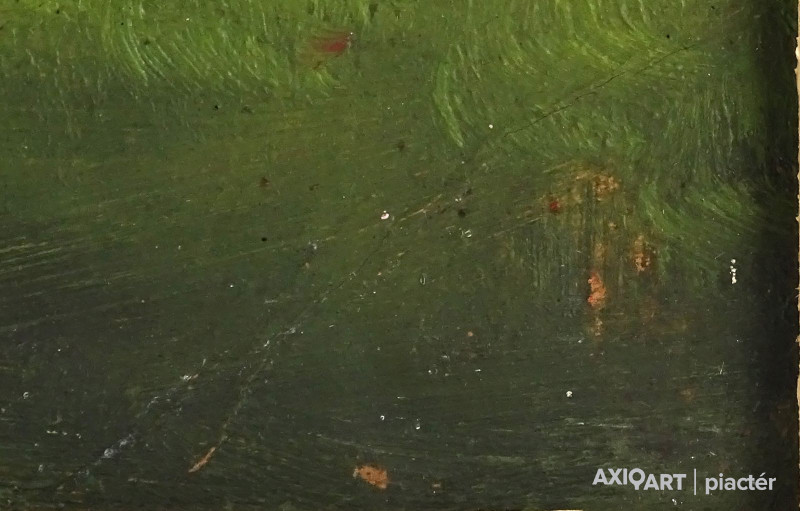 Olaj karton festmény üveglap mögött, régi keretben. Akasztási lehetőséggel rendelkezik.