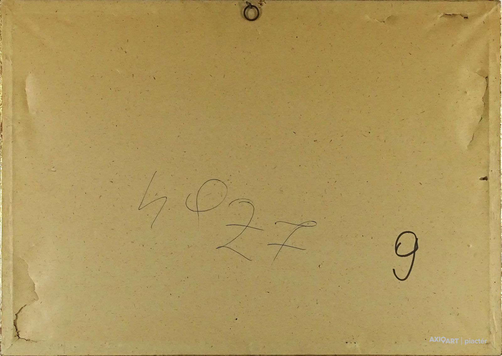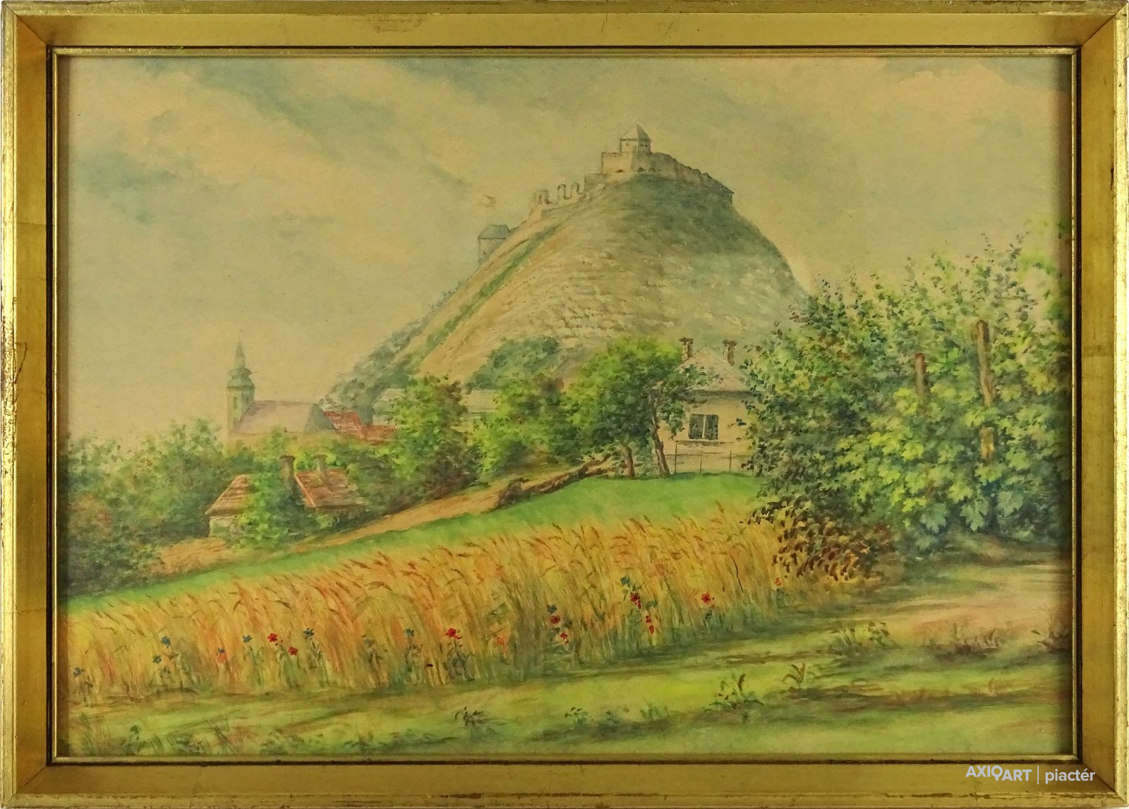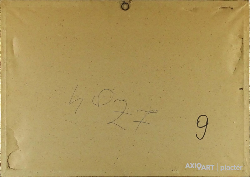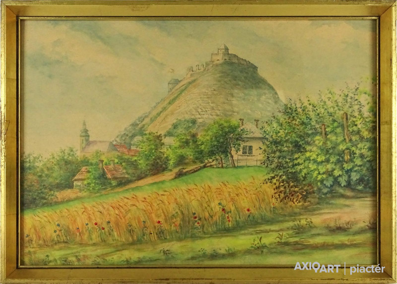 Papír akvarell üveglap mögött, aranyozott keretben. Akasztási lehetőséggel rendelkezik.