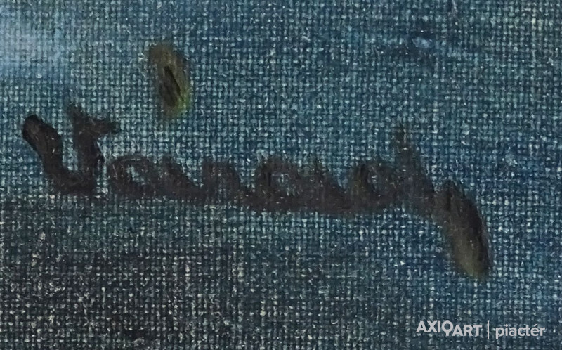[1Y034/Z018] Olaj vászon festmény, üveglap mögött, szép állapotú képcsarnokos keretben. Akasztási lehetőséggel rendelkezik. Jelezve jobbra lent: Balog A. Hátoldalán a kereten Képcsarnok Vállalat címke töredék látható, rajta felirat: A művészeti alkotás címe: LEÁNY Magasság: 86 cm Szélesség: 66 cm Súly: 5.37 kg Balogh András (képei szignóján az 1960-as évektől Balog) (Budapest, 1919. március 14. — Budapest, 1992. március 18.) festőművész, kerttervező, művészeti szakíró, c. egyetemi tanár. Életpályája és munkássága Apai ágon a géresi Baloghok Szatmár megyéből a dél-erdélyi Alsó-Fehér megyébe származtak, anyai fölmenői a Székelyföldön: Csíkban, ill. Háromszéken éltek. Szülei az 1900-as évek elején költöztek Budapestre. A Képzőművészeti Főiskolán 1937-ben kezdte meg tanulmányait Burghardt Rezső tanítványaként. 1950-töl 1980-ig a Kertészeti Főiskolán (később Kertészeti Egyetem) tanított a kerttervezési tanszéken művészettörténetet, szabadkézi rajzot, ábrázoló geometriát és kertesztétikát. Az Iparművészeti Főiskolán óraadóként kertesztétikát adott elő. 1971-ben részt vett a firenzei Palazzo Strozziban rendezett biennálén, ahol aranyéremmel tüntették ki. Rendszeres önálló és csoportos kiállítások sora következett ezután nemcsak Magyarországon, hanem Olaszország és Németország számtalan városában, kiállított Finnországban, Kanadában is. Egyéni kiállításai gyakran katalógusokkal jelentek meg.[1][2][3] Nyaranként Tihanyban vagy Zsennyén alkotott. Festészetét poétikus realizmus jellemzi, dekoratív elrendezésű kompozíciói és lágy színvilága bensőséges hangulatot, szépséget, harmóniát árasztanak. (Lány egyszarvúval; Alvó, Emberpár és táj, stb.) Nagyon sok tájképet és portrét festett, történelmi személyiségekről is, 1978 és 1989 közt megfestette Mindszenty József bíboros portréját. Képei a Magyar Nemzeti Galériában, vidéki múzeumainkban, olasz, német, finn, észak-amerikai, kanadai, ausztráliai gyűjteményekben vannak.