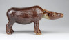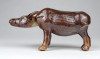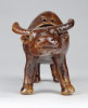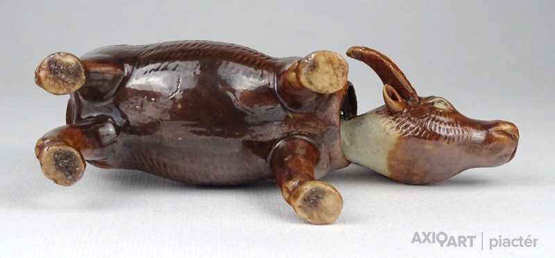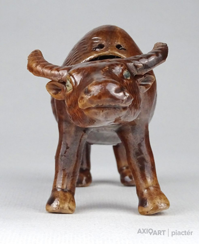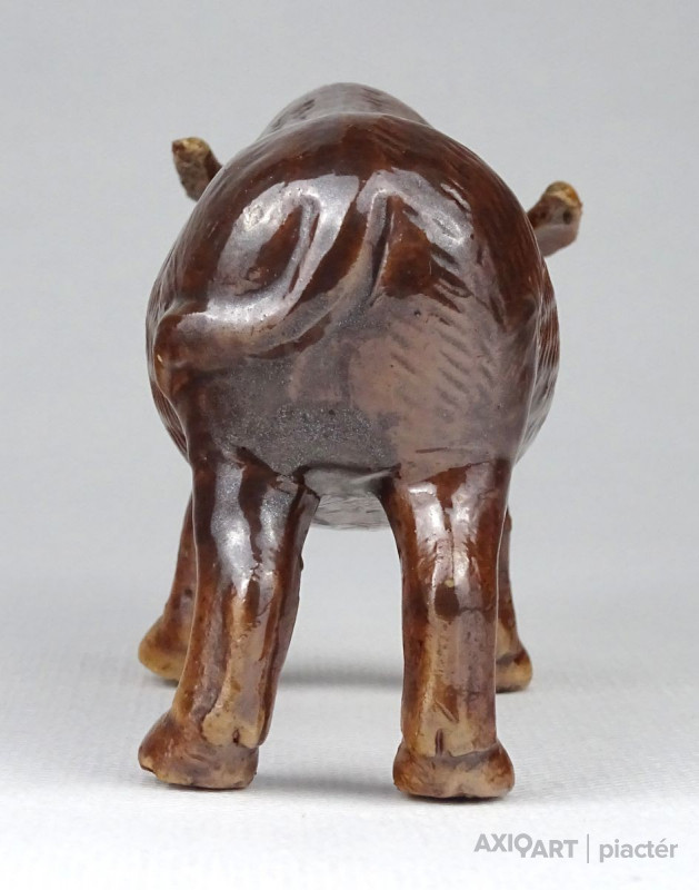 Régi, hibátlan állapotú barna mázas keleti porcelán bivaly figura. Feje egy dróton billeg, bólogat.