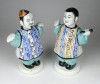 [1J508/X009] Régi, hibátlan állapotú kézzel festett keleti porcelán figura pár. Népviseletes kínai férfi és nő. Fejük kivehető, oldal irányba bólogatnak. Magasság: 16.5 cm Szélesség: 11 cm Súly: 0.73 kg