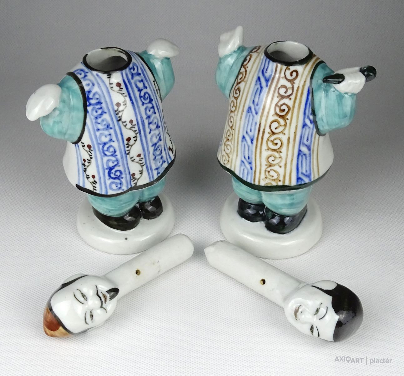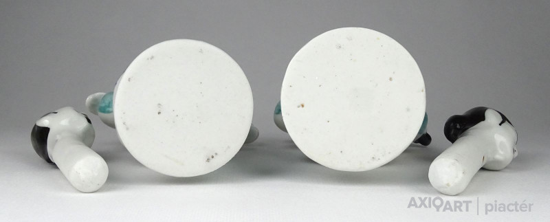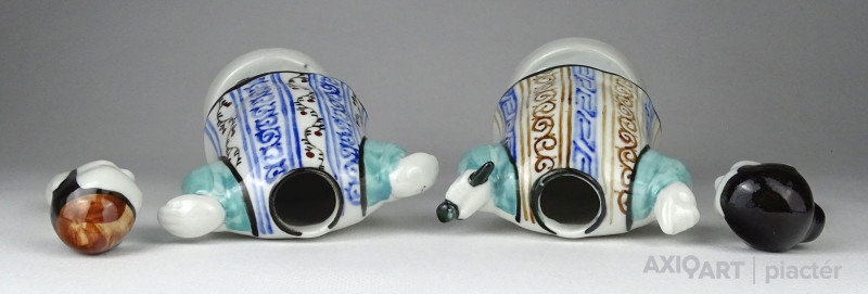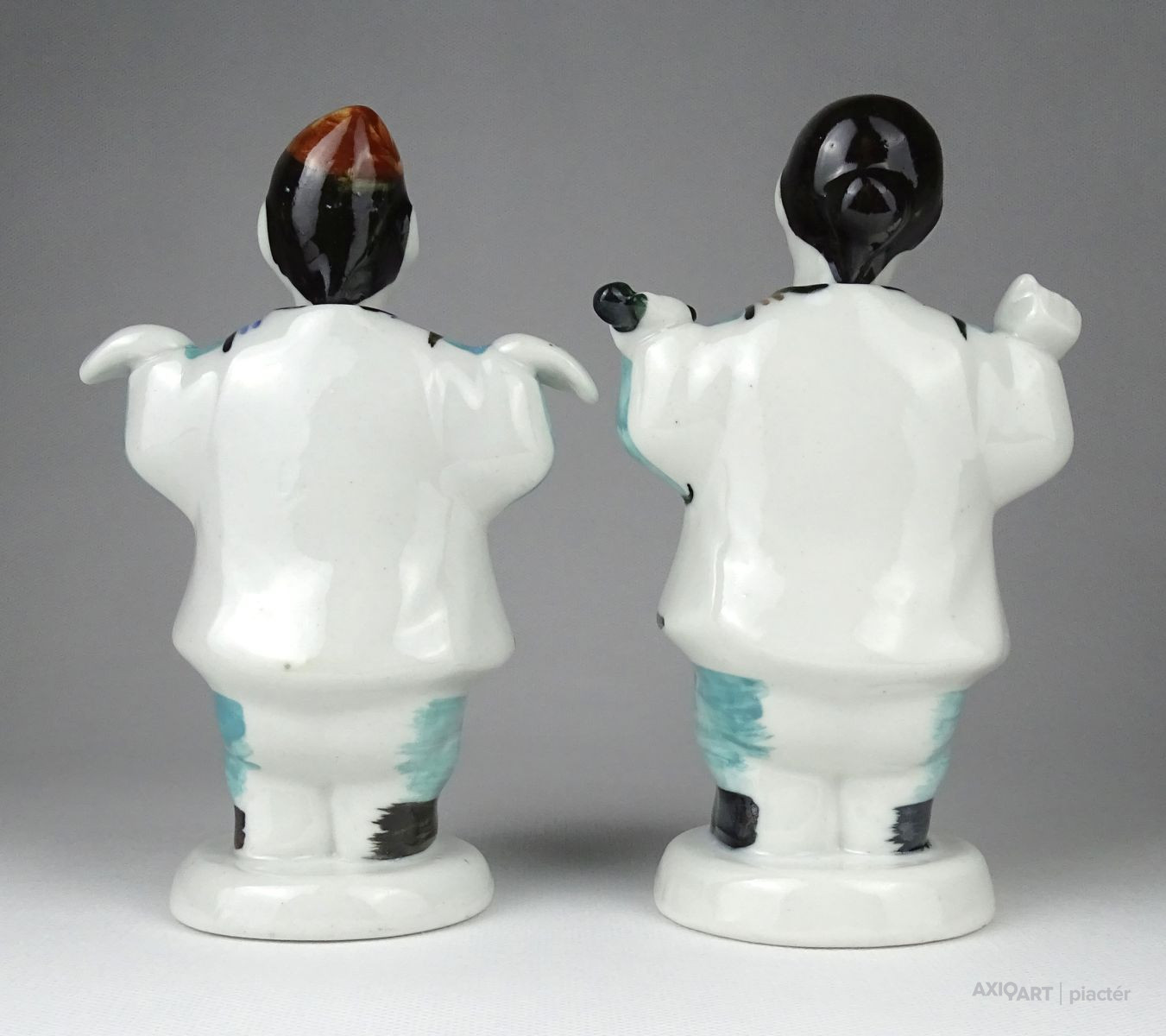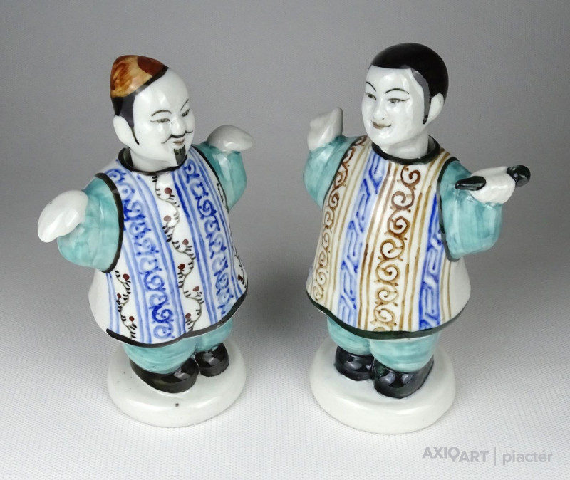 Régi, hibátlan állapotú kézzel festett keleti porcelán figura pár. Népviseletes kínai férfi és nő. Fejük kivehető, oldal irányba bólogatnak.