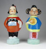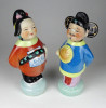 [1J509/X009] Régi, hibátlan állapotú kézzel festett keleti porcelán figura pár. Népviseletes kínai férfi és nő talapzaton. Fejük kivehető, oldal irányba bólogatnak. Magasság: 19 cm Szélesség: 9 cm Súly: 0.615 kg