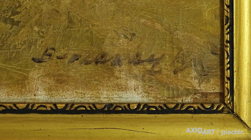 [1E014/100] Olaj vászon festmény, régi aranyozott keretben. Datált jelzés jobbra lent, lásd fotó. Magasság: 69 cm Szélesség: 86 cm Súly: 2.39 kg