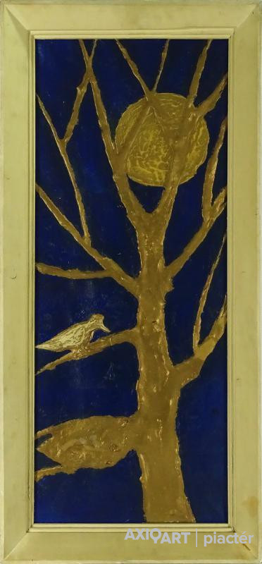 [1Y029/Z018] Olaj farost festmény, üveglap mögött, hibátlan képcsarnokos keretben. Hátoldalán Képcsarnok Vállalat papír címkéje: A művész neve: SCHÉNER MIHÁLY A kép címe: TÁJ Magasság: 66.5 cm Szélesség: 86 cm Súly: 6.54 kg Schéner Mihály festő, grafikus, szobrász, keramikus, bábtervező Medgyesegyháza, 1923-01-9 Elhalálozott: Budapest, 2009. május 11. Honlap: http://www.kormendigaleria.hu/kiadvany.html 1942-1947: Magyar Képzőművészeti Főiskola, tanára: Rudnay Gyula. 1978: Munkácsy-díj; 1984: érdemes művész; 1989: kiváló művész; 1995: Kossuth-díj. 1992-től a Magyar Művészeti Akadémia, 1993-tól a Széchenyi Irodalmi és Művészeti Akadémia tagja. 1956-ig tanított. 1982: Nagyatádi Faszobrász Alkotótelep, 1985: Nemzetközi Acélszobrász Alkotótelep, Dunaújváros. A stílusában felismerhető, mégis sokféle műtárgyat létrehozó ~ gazdag, állandóan alakuló életműve a folyton változó világban helyét kereső, az alkotói szabadságot megvalósító XX. századi képzőművész példázata lehetne. Magát expresszív-szürrealista alkotónak nevezi. Egyaránt dolgozik festékkel, textillel, fával, fémmel. Rajzol, szerkeszt, farag, épít, gyúr, varr és ragaszt, felhasználja a mézesbábok öntőformáit. Festő, rajzoló, textilszobor- és bábkészítő, fazekas, asztalos, esztergályos. Háromlépcsős folyamatban gondolkozik: rajzban tervez, majd fest, szobrot készít, “formába önt”, mindig a végső plasztikai megoldást keresi. Ami állandó és mégis játékosan változékony megjelenésű Schéner művészetében, az a gyermekkori emlékek által meghatározott népi mesterségek iránti tiszteletet kifejező motívumkincs, a tárgyi folklór formakészlete, amely már-már kézjegyként ismétlődik munkáin. Mitologikussá nőtt képzelete új lényeket teremt, pl: a Pigulát, amely disznótestű, emberfejű teremtmény. Schéner festményein a szürrealista motívumokat konstruktív szerkezetbe rendezi, a geometriát és az organikus természeti motívumokat egyaránt beépíti műveibe. A népi, népművészeti formakincsből merített lovas huszárok, betyárok, szegénylegények cifra szűr mentéje, piros csákója, fekete csizmája, az önálló életet élő zsinórdíszek és mézeskalács bábok, a kiskocsik a gyermekkori vásárok, búcsúk színes forgatagába vezet. A primér motívumokat aztán felváltják a vastagon felhordott felületbe karcolt jelek, vonalhálózatok, amelyek a játszó gyermek homokba rajzolt ábráit, a pásztorember fába vésett üzeneteit, az ősember barlang falába rótt mágikus jeleneteit idézik meg. A művész pillanatnyi érdeklődésének megfelelően a színek búvópatakként tűnnek el és jelennek meg ismét. A 60-as években leginkább a formákkal való játék érdekelte, a festmények felülete egyre gazdagodott: a táblaképek felületén applikációk jelentek meg, vagy lemállasztott rétegek hagyták maguk után hiányukat, motívumok nélküli ősformák, archetipikus képzetek bukkantak fel művészetében. A véletlenszerűnek látszó rétegekkel való játék azonban tudatos komponálás eredménye, amely később nyilvánvaló ritmusnak és formai szerkesztettségnek adja át a helyét, mint a Törvénytáblák c. sorozaton. A különböző művészi kifejezési formák egymásra termékenyítő hatással vannak, át- meg áthatják egymást. Textilszobrai, amelyekkel új műfajt teremtett, ugyanazzal az automatikus, expresszív-szürrealista módszerrel készülnek, mint festményei. A hagyományosan a népművészetben alkalmazott anyag, a filc lehetőséget ad a népi formakincs felelevenítésére, amely azonban a művész különös szürrealista átiratában jelenik meg. A szívekkel kivarrt, zsinórdíszes Posztókotlós c. művén mézesbábok lógnak, hátán huszárok lovagolnak. Egész sor textilből készült kéz-plasztikát alkot, amelyeket az ujjakra rávarrt díszekkel öltöztet, személyesít meg. A színes-különös világból aztán ~ újra puritán képi és formai rendbe juttatja el a nézőt, majd nemsokára tépett, gyűrt, vágott, csorgatott, repedezni hagyott szenvedélyesen vonagló képi felületeket hagy hátra. Schéner készített apró gyermekjátékokat, térstruktúra-tereket, mászókákat is. A magyar népi formák mellett szürreális játékaiban gyakran alkalmaz görög mitológiai alakokat, “elkentaurosodott” lovakat, Gorgó-fejeket, sellőket, hárpiákat, Pán-ábrázolásokat. Schéner nemcsak saját művészetéről publikál, hanem művésztársairól is számos írása jelenik meg, elsősorban az Új Auróra c. folyóiratban, amelynek egy ideig főmunkatársa volt. Irodalom kiállítása, Magyar Építőművészet, 1962/4. Húsz év után, Művészet, 1965/4. BOZÓKY M.: ~, Tiszatáj, 1968/5. PERNECZKY G.: Nincs uborkaszezon, Élet és Irodalom, 1969. augusztus 8. BARÁNSZKY-JÓB L.: ~, Művészet, 1969/9. LÁSZLÓ GY.: ~ kaposvári kiállítása, Jelenkor, 1969/4. MAJOR M.: Pásztorok, betyárok, huszárok - kezek, Tükör, 1970. szeptember 15. FRANK J.: Bemutatjuk ~t, Élet és Irodalom, 1972. május 6. ról kiállítása ürügyén, Képzőművészeti Almanach, Budapest, 1972 Sötétkék kokasok, Élet és Irodalom, 1973. szeptember 9. MAJOR M.: ~ játékai, Élet és Irodalom, 1974. július 27. BARTA J.: Egy különös művész, Alföld, 1974/6. VADAS J.: Szárnykészítők, Élet és Irodalom, 1975. október 4. JUHÁSZ F.: A halál ellen játszani, Élet és Irodalom, 1975. május 17. PAP G.: Kincsek és műkincsek, Művészet, 1975/6. P. SZŰCS J.: Az utak kettéválnak, Művészet, 1978/3. Békési művészet, Művészet, 1978/7. SZAMOSI F.: ~ [kismonográfia], Budapest, 1978 VADAS J.: Játék a játékkal, Élet és Irodalom, 1979. augusztus 18. NÉMETH L.: ~ műveiről, Művészet, 1979/4. MIKLÓS P.: Mit akar ez a múzeum?, Művésze