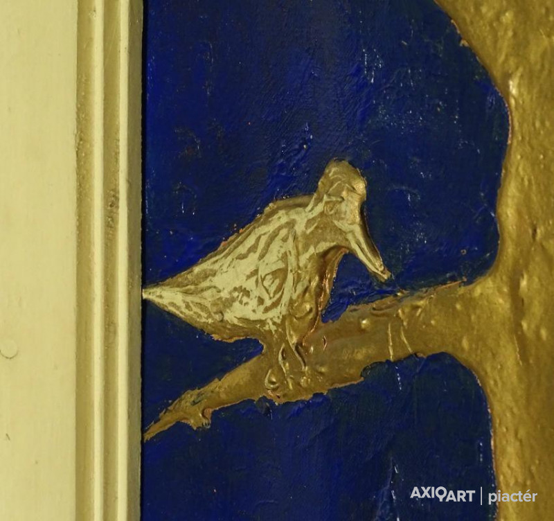 [FK0037/Z018] A kép mérete: 50 x 70 cm keret nélkül. Készült: Olaj, Vászon A kép Paizs László (Szentpéterúr, 1935) alkotása. Jelezve Jobbra lent "P. L." A festmény jó állapotban van. Keret: Ép A festmény hátoldalán a Képcsarnokvállalat címkéje található. Magyar festők és grafikusok életrajzi lexikona I-II. Festő. Tanulmányait a budapesti Iparművészeti Főiskolán végezte 1959-ben. Z. Gács György, Rákosy Zoltán és Szentiványi Lajos növendéke volt. A '60-as évek első felében hagyományosabb felfogású olajképeket festett, mozaikokat, freskókat, utóbb a pop-art körébe tartozó, a francia Arman munkáival rokon műveket alkotott. 1961 óta kiállító művész. Egyéni (Fényes Adolf Terem, Csók Galéria, Műcsarnok, Magyar Nemzeti Galéria, Halászbástya, Bástya Galéria, Vigadó Galéria, Budapest Galéria, Győr, Szombathely, Szeged, Zalaegerszeg, Duisburg, Aix-en-Provence, stb). és vegyes (Ernst Múzeum, Műcsarnok, Óbuda Galéria, Magyar Nemzeti Galéria, Csók Galéria, Vigadó Galéria, Székesfehérvár, Kaposvár, Pécs, Hódmezővásárhely, Firenze, Milano, Padova, Nápoly, Velence, Düsseldorf, Aachen, Genf, stb) tárlatokon vett részt. 1980-ban Munkácsy-díjjal jutalmazták, 1988-ban Érdemes Művész kitüntető elismerésben részesült. Munkáit őrzi a Magyar Nemzeti Galéria, a Fővárosi Képtár, a szombathelyi képtár, a pécsi Janus P. Múzeum, a székesfehérvári István Király Múzeum és a dunaszerdahelyi Kortárs Magyar Galéria. (H.B.: Műv, 1972/4, K.Gy.: Műv. 1977/2, K.G.: Műv. 1978/10, M.L.: Műv, 1983/5, R.G.: Műv, 1987/9, Sz.Gy.: Új Műv. 1995/4, MK) Magyar festők és grafikusok életrajzi lexikona I-II. Műgyűjtők és kereskedők kézikönyve Festő. Tanulmányait a bp.-i Iparművészeti Főiskolán végezte. Mozaikokat ferskókat, utóbb a pop-art körébe tartozó, a francia Arman műveivel rokon műveket alkotott. Mozaikok: a Szegedi Megyei Tanács, a Pécsi Óvoda, a Gödöllői Agrártudományi Egyetem. Freskók: Budapest - Csatárka úti Gyermekotthon. 1971-ben a Fényes Adolf Teremben volt kiállítása, 1983-ban pedig a szegedi Móra Ferenc Múzeumban nagyszabású tárlatokon mutatta be munkáit. 1988-ban érdemes művész kitüntető elismerésben részesült. (MK) Magyar festők és grafikusok adattára Az Iparművészeti Főiskolán végzett 1959-ben. Mozaikokat (Szeged, Megyei Tanács; Pécs, Óvoda; Gödöllő, Agrártudományi Egyetem), freskókat (Budapest, Csatárka úti Gyermekotthon), újabban a pop art körébe tartozó, a francia Arman műveivel rokon műveket alkotott. 1971-ben a Fényes Adolf Teremben nyílt kiállítása. 1983 februárjában a szegedi Móra Ferenc Múzeumban megrendezett nagyszabású tárlaton mutatta be alkotásait. 1988-ban érdemes művész kitüntető elismerésben részesült. - MK Művészeti lexikon I-IV. (Szentpéterur, 1935. dec. 26.- ): festő. Az Iparművészeti Főiskolán 1959-ben végzett Rákosy Zoltán, Z. Gách György és Szentiványi Lajos növendékeként. Épületdiszítő mozaikokat, (Szeged, Megyei Tanács, 1961; Pécs, Óvoda, 1964), műanyagfreskókat (Bp., Csatárka úti Gyermekotthon, 1964) és gobelinterveket készít. Kortárs magyar művészeti lexikon I-III. Festő, szobrász, grafikus. 1959: MIF, mesterei: Z. Gács György, Rákosy Zoltán, Szentiványi Lajos. 1980: Munkácsy-díj; 1988: érdemes művész. Főiskolás éveinek második felében, majd azt követően számos murális munka kivitelezésében vett részt, Fónyi Géza, Konecsni György, Z. Gács György, Rákosi Zoltán és Domanovszky Endre mellett dolgozva. A 60-as évek első felének hagyományosabb fölfogású olajképeket festett. 1964-ben a Velencei B.-n megismerkedett az amerikai pavilonban a pop art Európában akkor még újnak számító törekvésével, és részben ez inspirálta, hogy 1967-ben textil, fém, bőr anyagú "varrottas" képeket küldjön az FKS éves tárlatára; a megnyitó előtt többek között az ő munkáit is eltávolították a falról. A 70-es években pop art-os objekteket (A trónörököspár politikai gyilkosság áldozata lett, 1970, plexiüveg, újság, szarvasbogarak), majd konstruktív, átlátszó plexiüveg plasztikákat készített belső fénytörő határfelületekkel. A 80-as években készültek az anyagában színezett, konstruktív, nagyméretű poliészter szobrai, majd színes poliészter táblaképeket alkotott, mesterségesen roncsolt felületekkel, mintha régészeti leletek vagy atomtámadás utáni festmény-szurrogátumok lennének. Ekkor kezdett organikus plaszikájú bronzszobrokat is mintázni. A 90-es években, a táblaképek és szobrok mellett nagyméretű, egyedi grafikákat készített, formavilágában némileg a roncsolt táblaképekből kiindulva, de szinte kizárólag az emberi alakból elvonatkoztatott torzókat megjelenítve. Ek: 1966: Művészklub, Győr; 1971: Fényes A. T.; 1972: Bercsényi 28-30 G.; 1973: BME B-épület; 1976: Csók G.; 1977: G. Hildebrandt, Duisburg (NSZK); 1979: Bástya G., Halászbástya; Helyőrségi Műv. H., Nagyatád; József A. Műv. Közp., Szeged; Göcsej M., Zalaegerszeg; 1982: Bezzegh G., Küsnacht (CH); 1983: Móra F. M., Szeged; 1987: Műcsarnok (kat.); MNG; 1988: Pandora G., Badacsonytomaj; 1989: Parktheatter, Iserlohn (NSZK); Qualitas G.; Hevesi S. Színház, Zalaegerszeg; 1990: Vasarely Fondation (Ferdinánd Judittal, Fóth Ernővel), Aix-en-Provence (FR); 1994: Vigadó G.; 1997: Pest Center G.; 1998: Budapest G. (kat.); 1999: Pest Center G. (kat); G. Arcis, Sárvár; MMA, Bp.; 2001: SZK, Szhely; Ernst M. (kat.) Vcsk: 1961, 1964, 1966: FKS, Ernst M.; 1962: 9. Magyar Képzőműv. kiállítás, Műcsarnok; 1967: Mai magyar festészet, Új-Delhi; 1969: Vas megyei művészek, Savaria M., Szhely; V. Orsz. Grafikai B., Miskolc; 1971: Új művek, Műcsarnok; 1972: Fiatal művészek Budapestről. Likovni Salon, Újvidék (YU); 1972, 1973: Balatonboglár