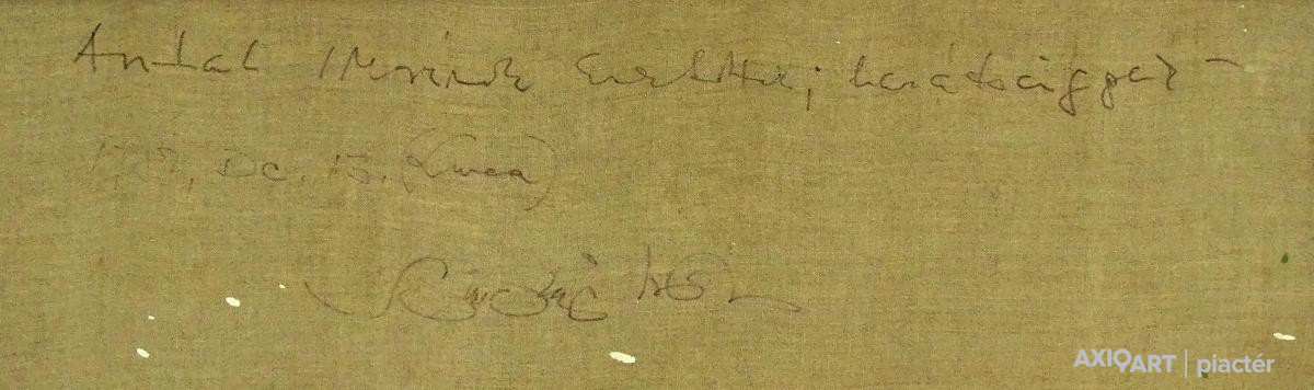[FK3264/FL-4] A kép mérete: 31,5 x 70,5 cm keret nélkül. Készült: Olaj, tempera, Farostlemez A kép Kurucz D. István (Hódmezővásárhely, 1914, Budapest, 1996) alkotása. Jelezve Jobbra lent "Kurucz 977" A festmény jó állapotban van. Keret: Ép A festmény hátoldalán a Képcsarnokvállalat raglapja látható. Magyar festők és grafikusok életrajzi lexikona I-II. Festő, grafikus. Vásárhelyről, ahol Darvasy István festőművész figyelt fel tehetségére, került Szőnyi István magániskolájába. A fővárosi Képzőművészeti Főiskolának, ahol Rudnay Gyula, Réti István, Benkhard Ágost, Szőnyi István voltak a tanítómesterei 1940-ig volt a tanítványa. A monumentális festészetet Nagy Sándor tanította. Tanulmányúton járt több kelet- és nyugat-európai államban, Mongóliában, Japánban, Algériában. 1940-ben Hódmezővásárhelyen telepedett le, 1943-1947 között bekapcsolódott szülővárosa művészeti és közéletébe. A Vásárhely Népe c. lap munkatársa volt. 1949-59 között Szőnyi tanársegédjeként freskótechnikát tanított a főiskolán. 1951-52-ben megszervezte a Honvédségi Képzőművészeti Stúdiót, majd kinevezték a Honvéd Képzőművészeti Iskola igazgatójának. A vásárhelyi iskola reprezentáns egyéniségeként jelentős szerepe volt a Vásárhelyi Őszi Tárlatok elindításában. Megszervezete és vezette a Mednyánszky Társaságot, s haláláig művészeti vezetője volt a Hajdúböszörményi Nemzetközi Művésztelepnek. Évekig elnöke volt a Hortobágyi Alkotótábornak. Az alföldi parasztok életét megörökítő képei a falképek összefoglaló stílusában a népi realizmus és a dekoratív sommázás szellemében készültek. Számos falképet festett (Kossuth Akadémia, hódmezővásárhelyi iskola, stb.). 1941-től számos kisebb-nagyobb egyéni kiállítása volt, bemutatkozott több hazai és külhoni városban. 1941-től minden jelentősebb országos rendezvény és a magyar művészek külföldi bemutatóinak résztvevője. Rendszeresen szerepelt a Vásárhelyi Őszi Tárlatokon, a Hatvani Tájkép és Portrébiennálékon, a Szegedi Nyári Tárlatokon. Képei bemutatásra kerültek a vásárhelyi iskola jubileumi rendezvényein. 1962-ben több alkotásával szerepelt a Velencei Biennálén. Díjak: SZOT-díj, Munkácsy-díj, Érdemes és Kiváló Művész kitüntetés, Tornyai-plakett, római ösztöndíj, a Munka Érdemrend arany fokozata, Káplár Miklós-díj és emlékplakett, Kossuth-díj. Művei megtalálhatók minden jelentősebb hazai, több olasz és japán közgyűjteményben. (ML, D.J.: Műv. 1985/5, Tasnádi Attila adatközlése nyomán, L.L.: Műv. 1983/3) Magyar festők és grafikusok életrajzi lexikona I-II. Műgyűjtők és kereskedők kézikönyve Festő, grafikus. Vásárhelyről, ahol Darvasy István festőművész figyelt fel tehetségére, került Szőnyi István magániskolájába. A fővárosi Képzőművészeti Főiskolának, ahol Rudnay Gyula, Réti István, Benkhard Ágost, Szőnyi István voltak a tanítómesterei 1941-ig volt a növendéke. A monumentális festészetet Nagy Sándor tanította. Egy ideig tanársegédként működött Szőnyi mellett. Több ízben járt Itáliában tanulmányúton. Évekig művészeti vezetője volt a Hajdúböszörményi Nemzetközi Művésztelepnek. Az alföldi parasztok életét megörökítő képei a falképek összefoglaló stílusában a népi realizmus és a dekoratív sommázás szellemében készülnek. A II. világháború alatt szerepet vállalt a Szocialista Képzőművészek Csoportjának akcióiban. 1949-1960 k. a Képzőművészeti Főiskola falképtanszékének tanára volt. Több falképet festett (Kossuth Akadémia, hódmezővásárhelyi iskola, stb.). 1962-ben több alkotásával szerepelt a Velencei Biennálén, SZOT-díjas, Munkácsy-díjas, érdemes és kiváló művész kitüntető elismerésében részesült. (ML, D.J.: Műv.-1985/5, L.L: Műv.-1983/3) Magyar festők és grafikusok adattára Tanulmányait a Képzőművészeti Főiskolán végezte, ahol Rudnay Gyula és Réti István voltak a mesterei. 1941-1943-ban ösztöndíjas Rómában. 1943-1947 között Hódmezővásárhelyen dolgozik, egyidejűleg a Vásárhelyi Hétfő c. hetilap szerkesztője. 1949-1960 közötti években a budapesti Képzőművészeti Főiskola freskó tanszékének tanára. Az 1940-es évek eleje óta kiállító művész. 1962-ben a Velencei Biennálén állították ki műveit. 1970-ben Csók István Galériában volt kiállítása. A Vásárhelyi Őszi Tárlatok és a Szegedi Nyári Tárlatok rendszeres kiállító művésze. Az alföldi festészet egyéni hangú továbbfejlesztője. Táblaképeket, freskókat és kerámia falképeket alkot. Munkácsy-díjas, érdemes és kiváló művész kitüntető elismerésében részesült. A SZOT a legelső képzőművészek közt, 1962-ben tüntette ki díjával. A 70. születésnapját ünneplő művész 1984 decemberében életmű kiállítást rendezett műveiből a hódmezővásárhelyi Tornyai János Múzeumban. 1986-ban a budapesti Hollósy Galériában nyílt kiállítása. - Irod.: Szij Rezső: Kurucz Dezső István festőművész. Bp. 1967.; Kulcsár Ödön: SZOT-díjasok. Bp., 1981.; Lóska Lajos: Mindig freskót szerettem volna festeni. Beszélgetés Kurucz Dezső Istvánnal. Művészet, 1984. 3. Művészeti lexikon I-IV. Festő, Munkácsy-díjas. A Képzőművészeti Főiskolán Rudnay Gyula, Réti István, Benkhard Ágost, Szőnyi István növendéke volt 1934-40 között. Több ízben járt külföldi tanulmányúton. Az alföldi parasztok életét megörökítő képei a falképek összefoglaló stílusában a népi realizmus és a dekoratív sommázás szellemében készülnek. 1949-60 között a Képzőművészeti Főiskola falképtanszékének tanára volt. Több falképet festett (Kossuth Akadémia; Hódmezővásárhely, iskola, pápai pártház, 1965). Legutóbb 195