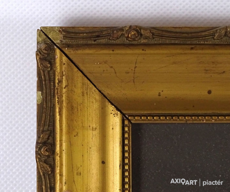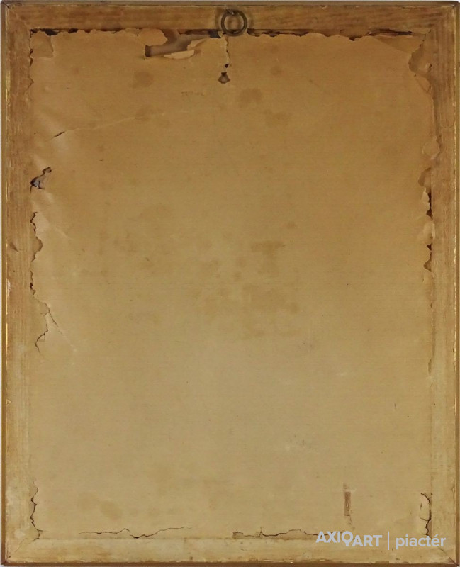 Papír akvarell festmény üveglap mögött, régi aranyozott keretben.