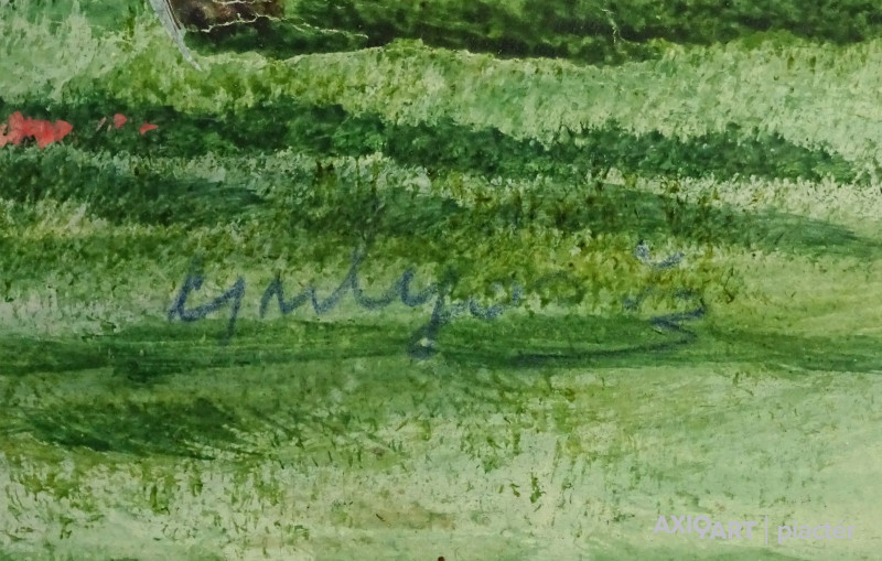 [FKA862/Z026] A kép mérete: 33 x 24 cm keret nélkül. Készült: Akvarell, Papír A kép Vinkler László (Szabadka, 1912, Szeged, 1980) alkotása. Jelezve jobbra lent "Vinkler László" A festmény jó állapotban van. Keret: Paszpartúban Magyar festők és grafikusok életrajzi lexikona I-II. Festő. Tanulmányait Lápossy-Hegedűs Géza irányításával kezdte. A budapesti Képzőművészeti Főiskolán Glatz Oszkár és Karlovszky Bertalan tanítványa volt. 1935-ben diplomázott. 1933-ban a főiskola jubileumi tárlatán a "Nagymamám" című alkotásával elnyerte a Balló-díjat. 1935-1936-ban római ösztöndíjas volt, és a Collegium Hungaricum-ban töltött nyolc hónapot. Szorgalmasan dolgozott, közben tanulmányokat folytatott az Accademia delle Belle Arti freskó-osztályán, Ferazzi irányítása mellett. Az itt készült "Maria Surigia" című képmását 1936-ban a Collegium Hungaricum kiállításán mutatta be, amelyet az olasz állam vásárolt meg. A "Római szobrásznő" című képe 1937-ben elnyerte a Jellinek-díjat. Az alkotás jelenleg a Magyar Nemzeti Galéria tulajdona. Számos kelet- és nyugat-európai országban járt tanulmányúton. 1931-től szerepelt hazai és külföldi bemutatókon. Egyéni kiállításai voltak Szegeden (1942, 1958, 1963, 1972), az Ernst Múzeumban (1959), Olaszországban (1961), Jugoszláviában (1968). Nagyobb anyaggal szerepelt a szegedi művészek 1967-es Magyar Nemzeti Galéria-béli kiállításán. 1932-ben Balló-díjat, 1937-ben Fényes Adolf-díjat kapott, 1972-ben Szeged város alkotói-díját, 1979-ben a Szegedi Nyári Tárlat díját nyerte el. Éveken keresztül (tizenöt év megszakítással) a szegedi Tanárképző Főiskola rajzi tanszékének vezetőjeként működött. Korábban protréfestőként volt ismeretes. Karlovszky mellett a rajz kultuszára és a csendéleti formalátásra kapott indíttatásokat, később Glatz hatott rá, így a rajzos analizálás helyett a művész a szélesebb festőiségre tért át. A naturalizmussal elvi szakítást jelentő harmadik stílusát a novocento jelképes, színesen dekoratív szellemében alakította ki. Jeles grafikus volt. Több irodalmi művet illusztrált. Monumentális feladatokkal is foglalkozott (freskók a Petőfi-telepi templomban stb.). 1957-ben a városban végzett művészi tevékenysége elismerésül a szegedi Collegium Artium Képzőművészeti tagozata vezetőjévé választotta. Műveinek jelentős részét a szegedi Móra F. Múzeum őrzi. (PZ-SzMF,D.E.: Műv. 1927/6, ML, Sz.Z.: Műv. 1973/1, Műv. 1982/10. D.F.Zs.: Műv. 1973/8.) Magyar festők és grafikusok életrajzi lexikona I-II. Műgyűjtők és kereskedők kézikönyve Festő. Tanulmányait Lápossy-Hegedűs Géza irányításával kezdte. A budapesti Képzőművészeti Főiskolán Glatz Oszkár és Karlovszky Bertalan tanítványa volt. 1931 óta kiállító művész. 1933-ban a főiskola jubileumi kiállításán a "Nagymamám" c. festményével elnyerte a Balló-díjat. 1935-36-ban római ösztöndíjas volt. Az Accademia della Bella Arti freskó-osztályán, Ferazzi mester mellett folytatott tanulmányokat. Az itt készült "Maria Surigia" c. portréját 1936-ban a Collegium Hungaricum kiállításán mutatta be, amelyet az olasz állam vásárolt meg. A "Római szobrásznő" c. képe 1937-ben elnyerte a Jellinek-díjat. A mű a MNG tulajdona. Több kelet- és nyugat-európai országban járt tanulmányúton. Egyéni kiállításai voltak Szegeden (1942, 1958, 1963, 1972), az Ernst Múzeumban (1959), Olaszországban (1961), Jugoszláviában (1968). Nagyobb anyaggal szerepelt a szegedi művészek 1967-es MNG-beli kiállításán. 1937-ben Fényes Adolf-díjat, 1972-ben elnyerte Szeged város alkotói-díját, 1979-ben a Szegedi Nyári Tárlat díját. Ezen kívül művészpedagógusi és alkotói tevékenysége elismeréseként még számos kitüntetéssel és díjjal jutalmazták. Hosszabb ideig a szegedi Tanárképző Főiskola rajztanszékének vezetőjeként tevékenykedett. Korábban arcképfestőként volt ismeretes. Karlovszky mellett a rajz kultuszára és a csendéleti formalátásra kapott indíttatásokat, később Glatz Oszkár hatott rá és a rajzos analizálás helyett a szélesebb festőiségre tért át. A naturalizmussal elvi szakítást jelentő harmadik stílusát a novocento jelképes, színesen dekoratív szellemében alakította ki. Jeles grafikus volt. Számos irodalmi művet illusztrált. Monumentális feladatokkal is foglalkozott. (freskók a Petőfi-telepi templomban, stb). (PZ-SzMF,ML,Sz.Z.: Műv.-1982/10) Magyar festők és grafikusok adattára Művészeti tanulmányait Lápossy-Hegedűs Géza irányításával kezdte, majd a Képzőművészeti Főiskolán Karlovszky Bertalan és Glatz Oszkár növendékeként fejezte be 1935-ben. 1931 óta kiállító művész. 1933-ban a főiskola jubileumi kiállításán a Nagymamám c. festményével elnyerte a Balló-díjat. A diploma megszerzését követően 1935-1936-ban római ösztöndíjas. Az itt készült Maria Surigia c. portréját az olasz állam megvásárolta. A Római szobrásznő c. képe 1937-ben elnyerte a Jellinek-díjat, s amelyet ma az MNG őriz. Számos kelet- és nyugat-európai országban megfordult tanulmányúton. Egyéni kiállításai voltak Szegeden (1942, 1958, 1963, 1968, 1972), az Ernst Múzeumban (1959) és Dunaújvárosban (1977), illetve külföldön Olaszországban (1961) és Jugoszláviában (1968). Nagyobb anyaggal szerepelt a szegedi művészek 1967-ben MNG-beli bemutatóján. 1972-ben elnyerte Szeged város alkotói díját és 1979-ben a Szegedi Nyári Tárlat díját. Hosszabb időt töltött a Szegedi Tanárképző Főiskola rajztanszékének élén. Emlékkiállítását 1982-ben a szegedi Móra Ferenc Képtárban és a MNG-ban rendezték meg. Karlovszky mellett a rajz kultuszára és a csöndéleti formalátásra kapott indíttatásokat, később Glatz hatott rá és a ra