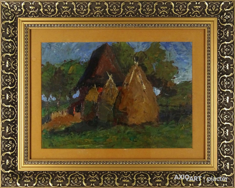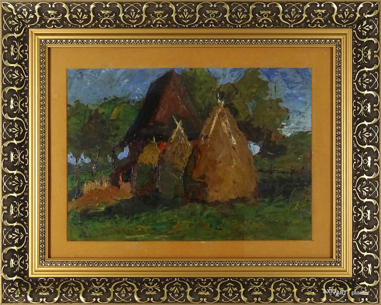 [FKC190/Bp108/16] A kép mérete: 25 x 31 cm keret nélkül. Készült: Olaj, Karton A kép Katona Kiss Ferenc (Szegvár, 1909) alkotása. Jelezve középen lent "959 Katona" A festmény jó állapotban van. Keret: Ép Magyar festők és grafikusok életrajzi lexikona I-II. Festő és grafikus. A budapesti Képzőművészeti Főiskolán Rudnay Gyula volt a mestere. Művészetére mégis Koszta József festőművész volt igen nagy hatással. 1940-1945 között ipartanuló iskolai rajztanár, 1951-1953 között a műszaki Tanárképző Főiskola adjunktusa, 1953-56 között a BME Ábrázológeometriai Tanszékének tanársegédje. 1956-ban visszavonult Szentesre, és csak a festészetnek élt. A város megbecsült művészeként a Szentes környéki táj és az alföldi ember ihletett ábrázolója. Képeit fejlett rajzkészség, színgazdagság jellemzi. Első önálló kiállítása 1958-ban Szentesen volt. A Délalföldi Tárlat rendszeres résztvevője. Sárospatakon grafikai munkáit mutatta be. Díjak: Szentes városáért kitüntetés, Szentes városa Pro Urbe-emlékérem, Koszta-emlékérem. Munkáit a szentesi Képzőművészeti Alapítvány őrzi. (Tasnádi András adatközlése nyomán, MFGA) Magyar festők és grafikusok adattára A Képzőművészeti Főiskolán 1939-ben szerezte meg a rajztanári és művészeti diplomáját, ahol Rudnay Gyula volt a mestere. 1940-1955 közötti években a budapesti Műszaki Egyetem ábrázoló tanszékének volt tanársegédje. 1966 óta csak festészettel foglalkozik, művészetére Koszta József volt igen nagy hatással. Első önálló tárlatát 1958-ban Szentesen rendezte meg. Azóta 1984 szeptemberéig 11 önálló tárlata volt. Sárospatakon grafikai munkáit mutatta be. A Délalföldi Tárlat rendszeres résztvevője. Munkája elismeréseként 1981-ben Szentes város Pro Urbe emlékérmet, 1984-ben pedig a Koszta-emlékérmet kapta. - ÖLK Magyar festők és grafikusok életrajzi lexikona I-II. Műgyűjtők és kereskedők kézikönyve Festő és grafikus. A bp.-i Képzőművészeti Főiskolán Rudnay Gyula volt a mestere. Művészetére mégis Koszta József festőművész volt igen nagy hatással. Első önálló kiállítása 1958-ban Szentesen volt. A Délalföldi Tárlat rendszeres résztvevője. Sárospatakon grafikai munkáit mutatta be. Szentes városa Pro Urbe-emlékérmet adományozott kiemelkedő munkásságáért, 1984-ben Koszta-emlékérmet kapott. (MFGA)